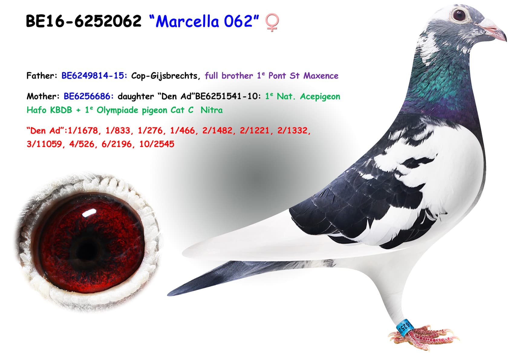 Mother: BE6256686: daughter “Den Ad”BE6251541-10: 1e Nat. Acepigeon  Hafo KBDB + 1e Olympiade pigeon Cat C  Nitra