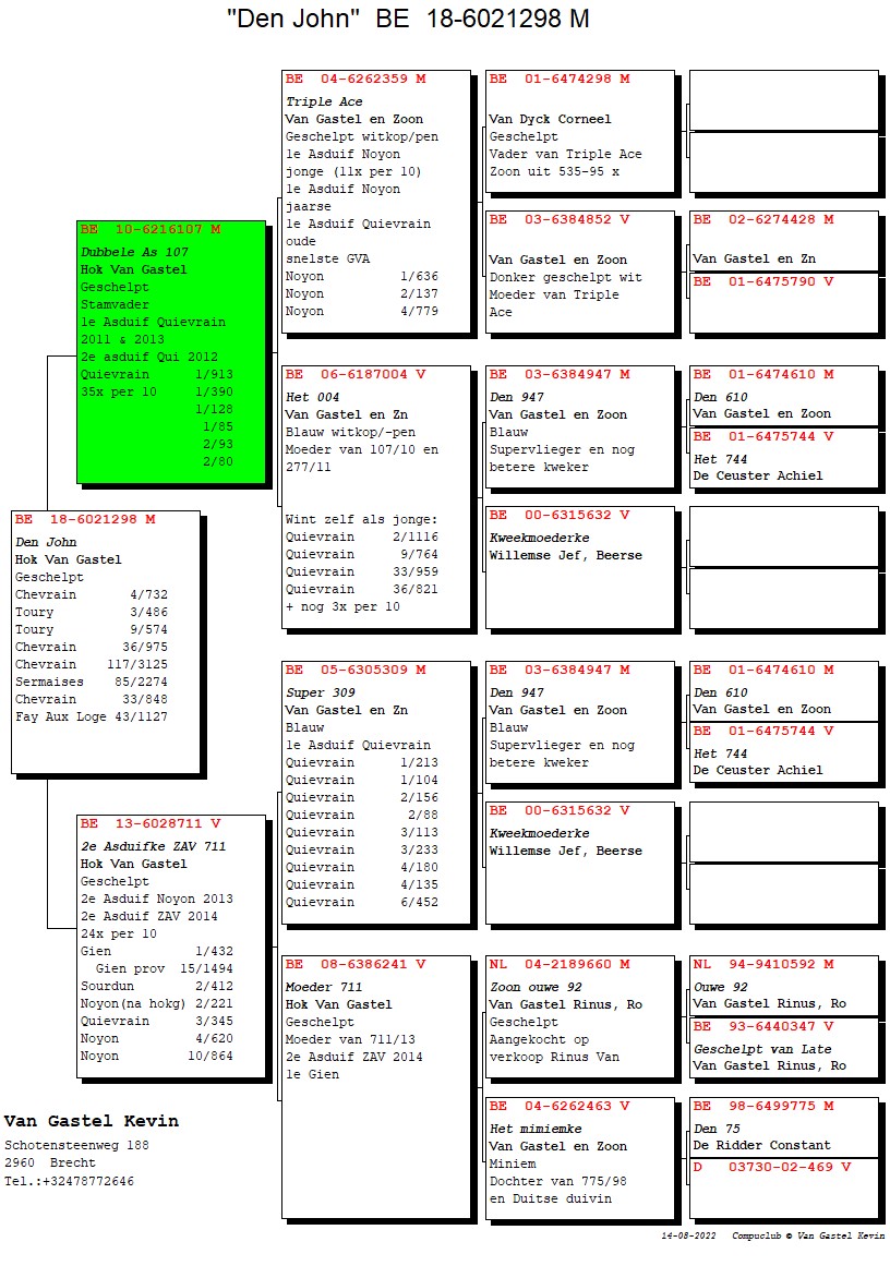 Won: 2nd ace Noyon ’13 – 2nd ace ZAV ’14 - 24 x 1/10 – 1st Gien 432b. – 2nd Sourdun 412b. - 2nd Noyon 221b. – 3rd Quievrain 345b. – 4th Noyon 620b. – 10th Noyon 864b.