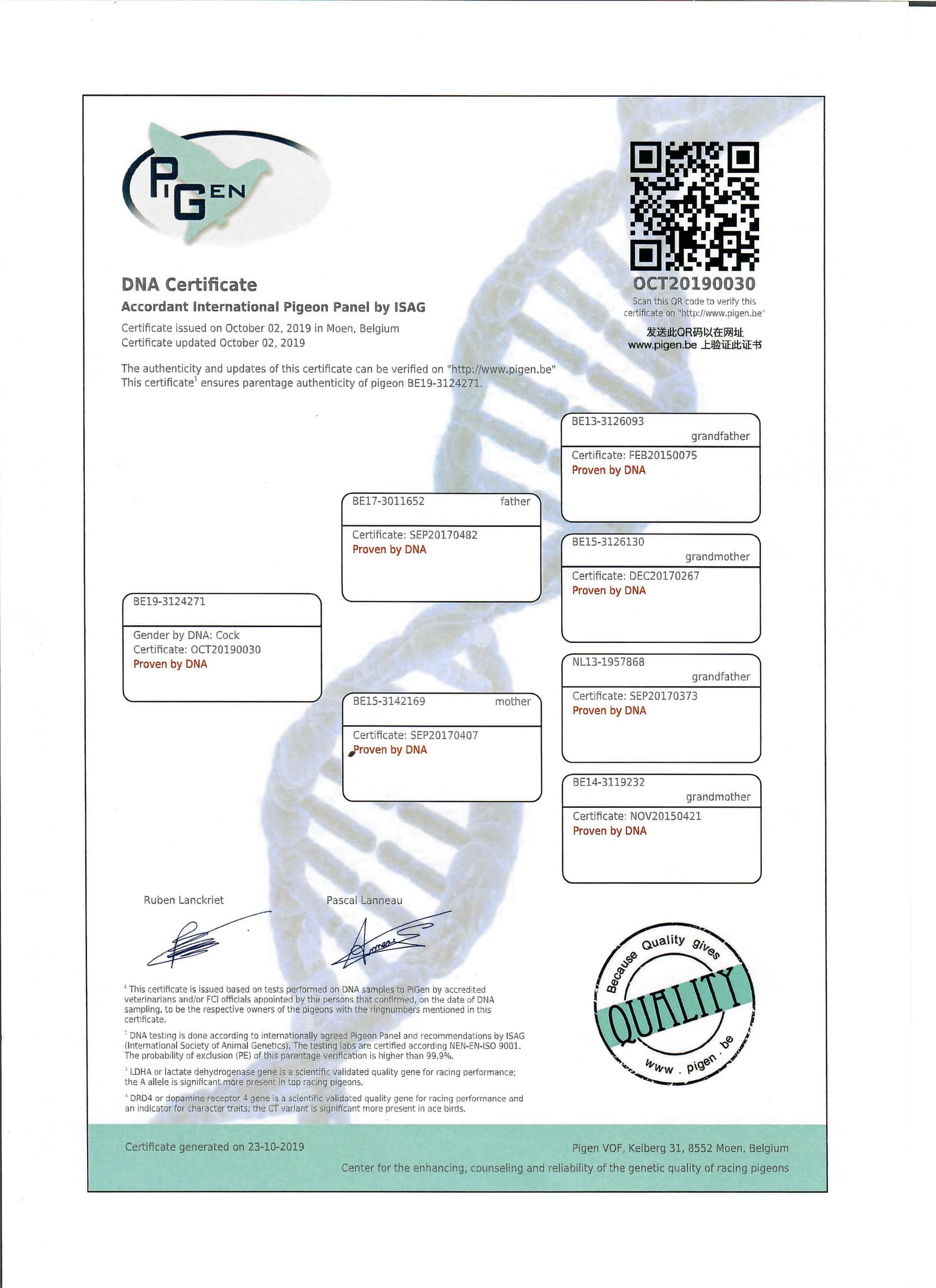 Direct daughter “Son Zidane” (NL13-1957868 – original Willem de Bruijn) x “Gueretje” (daughter 2nd Nat. ace KBDB Great Middle Distance)