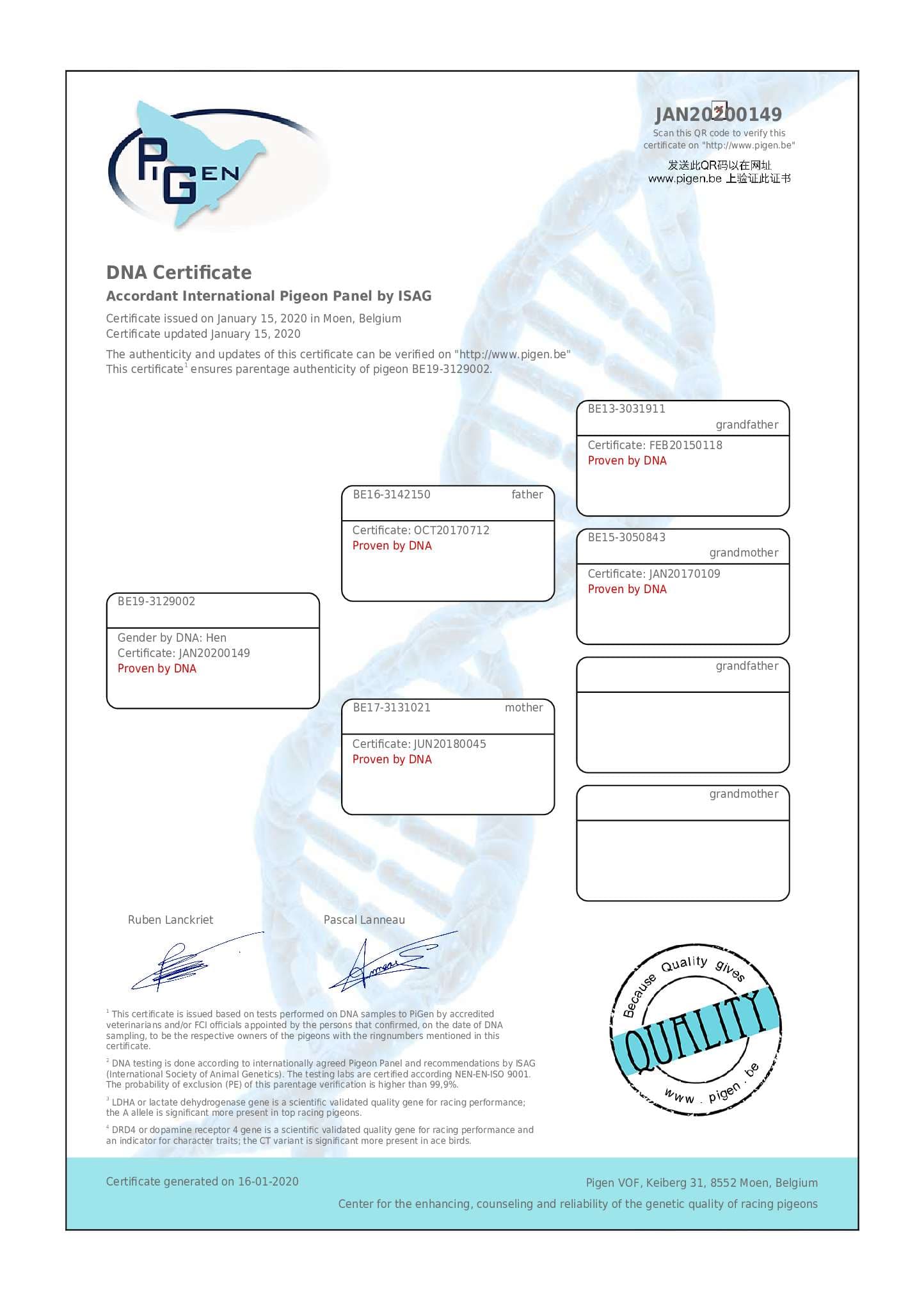8. Belgian long dist. racer PIPA Ranking 2020 (‘Always There’)