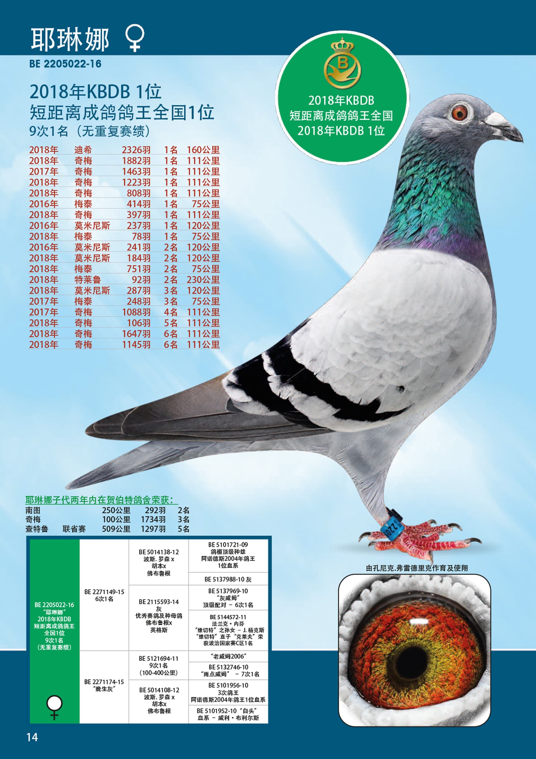 Daughter “956/10” 3 x Ace bird x “952/10” Strain Witkop Willy Briers