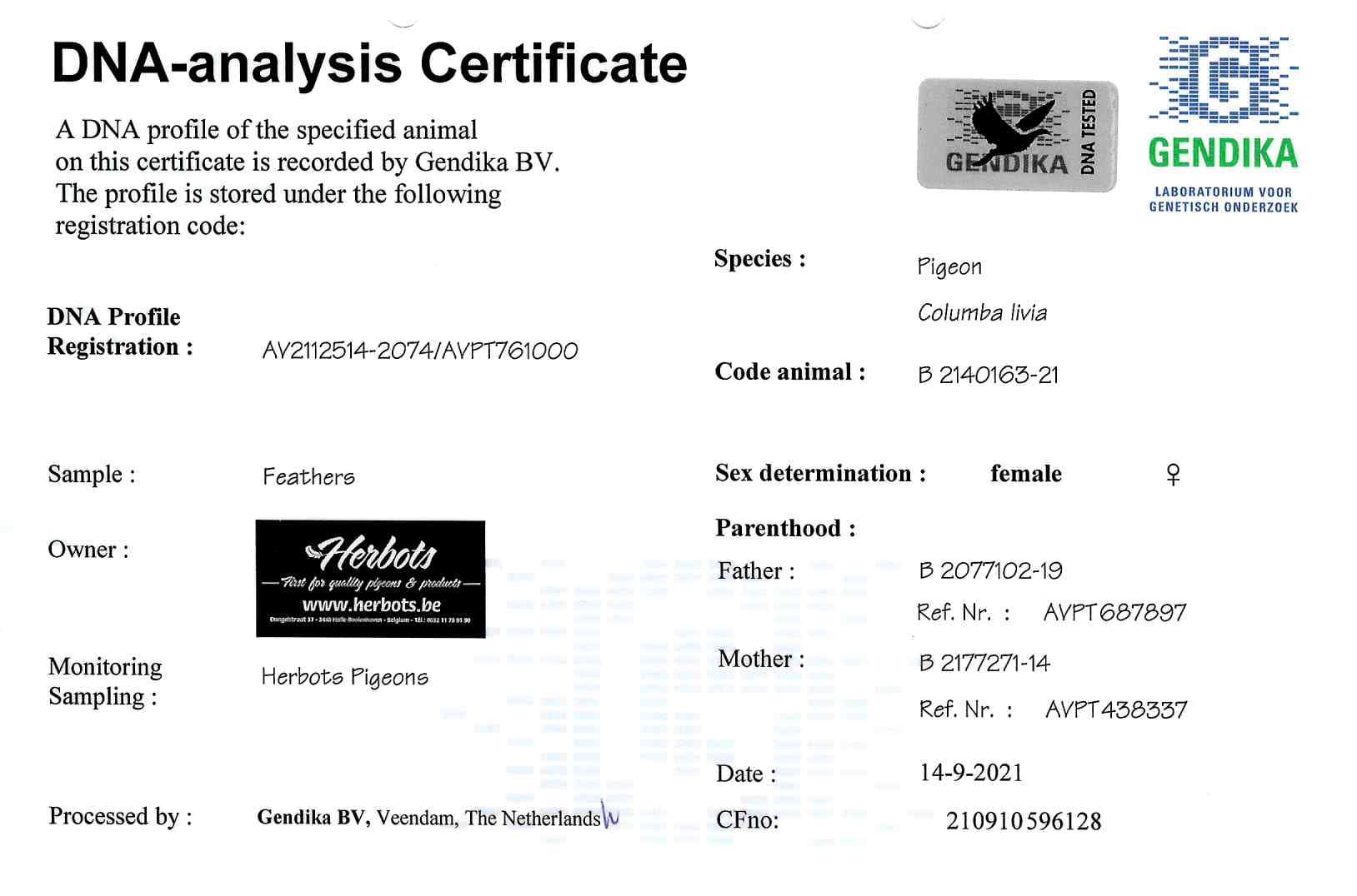 Breeder:HERBOTS GEBR. 贺伯特兄弟