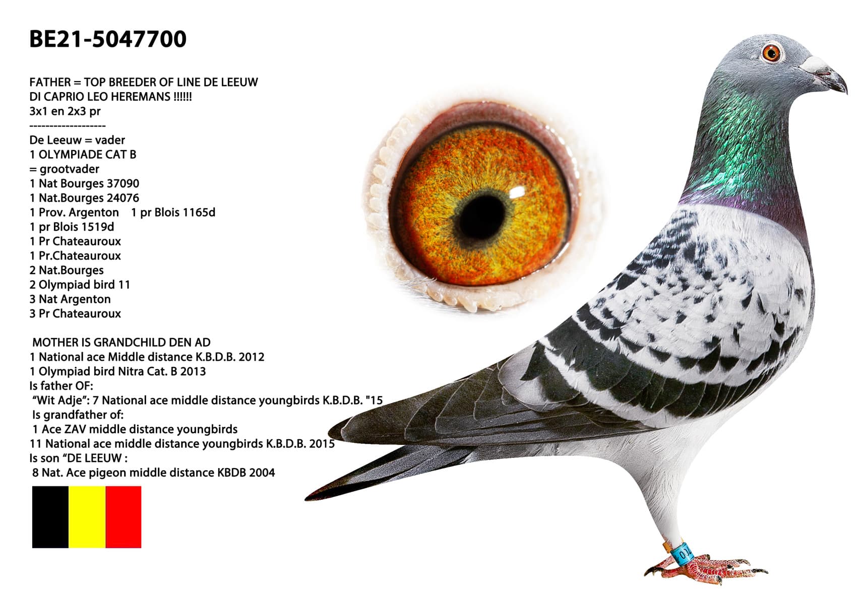 Father is top breeder of lines "DE LEEUW" & "DI CAPRIO"