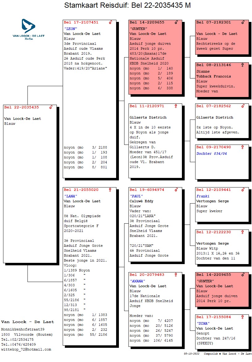 Breeder:VAN LOOCK - DE LAET 范卢克-德拉特