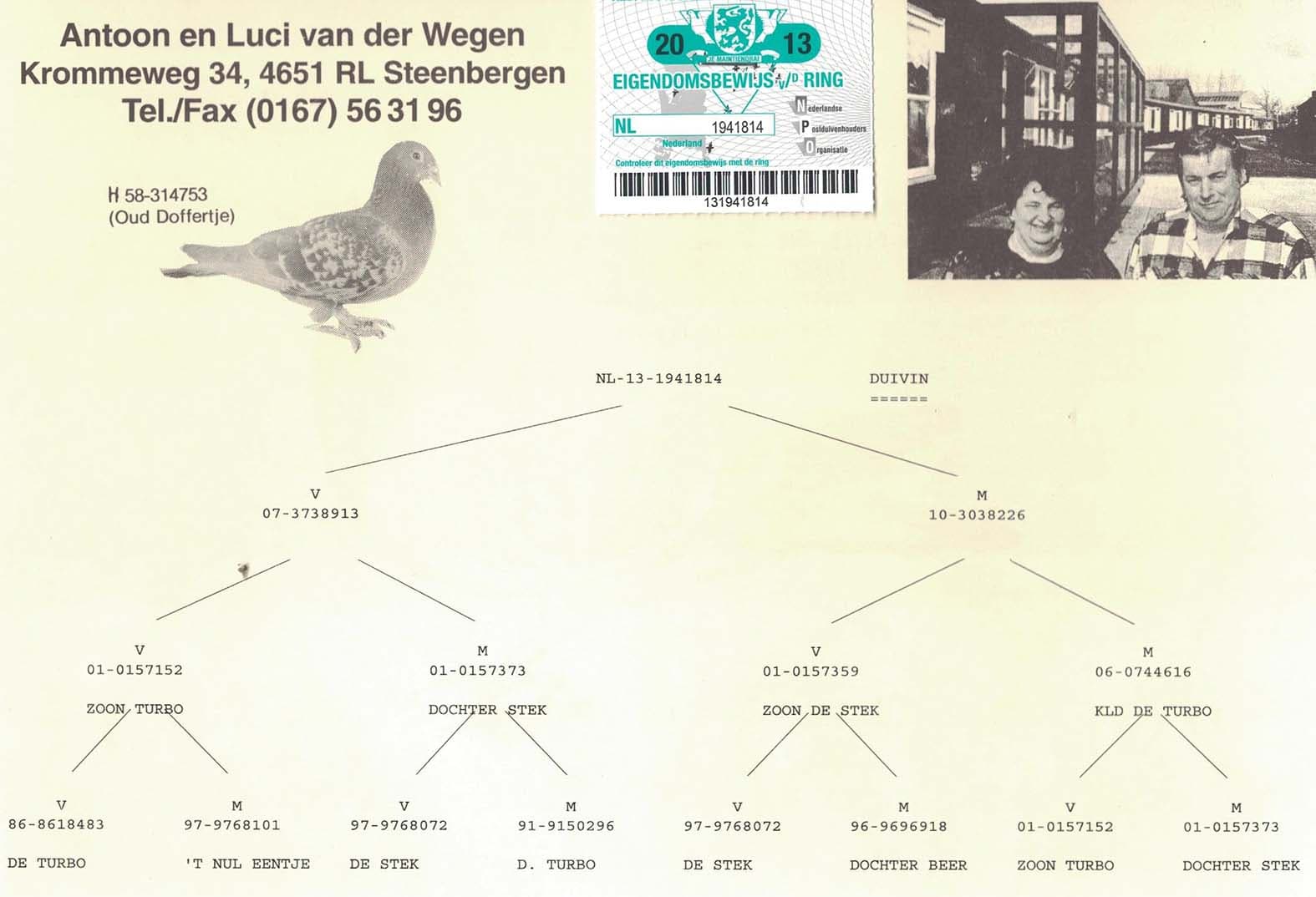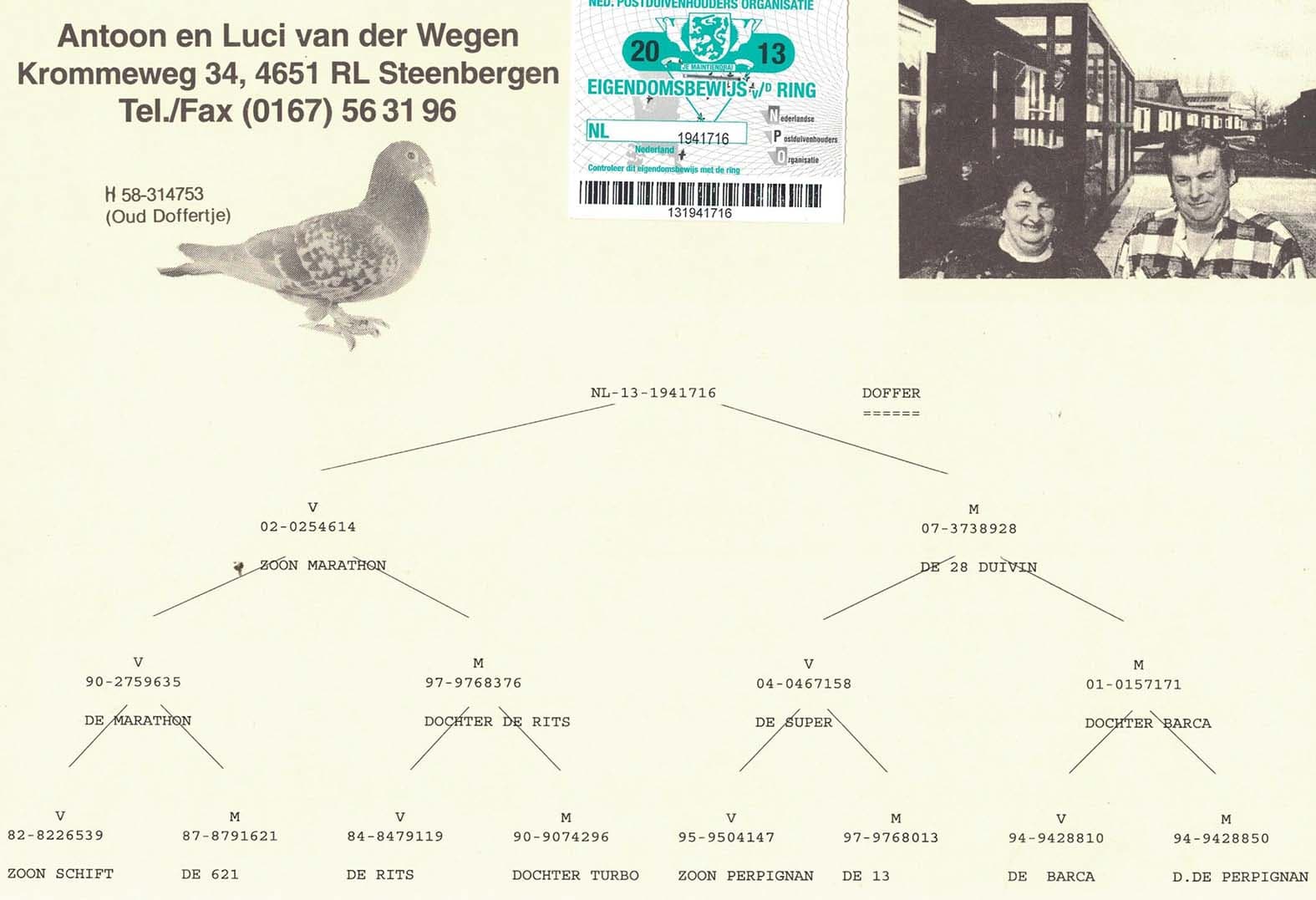 Breeder:100% VAN DER WEGEN A. & L. 100% 纯范德维根血系