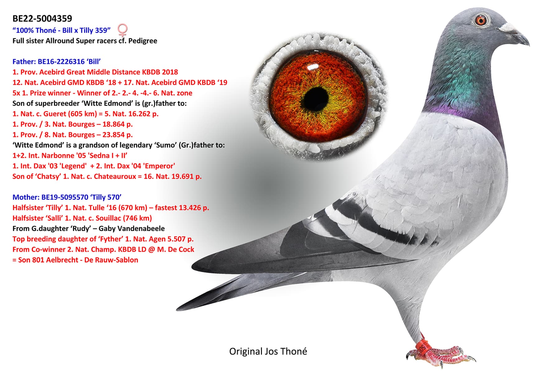 Full sister Avril - legendary breeding bird - Olympiad Pigeon & 20x 1. prize