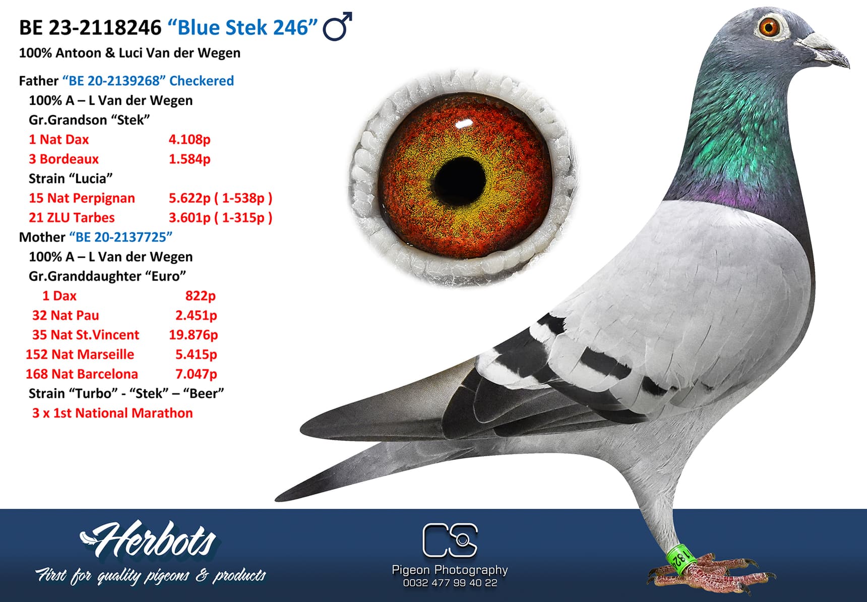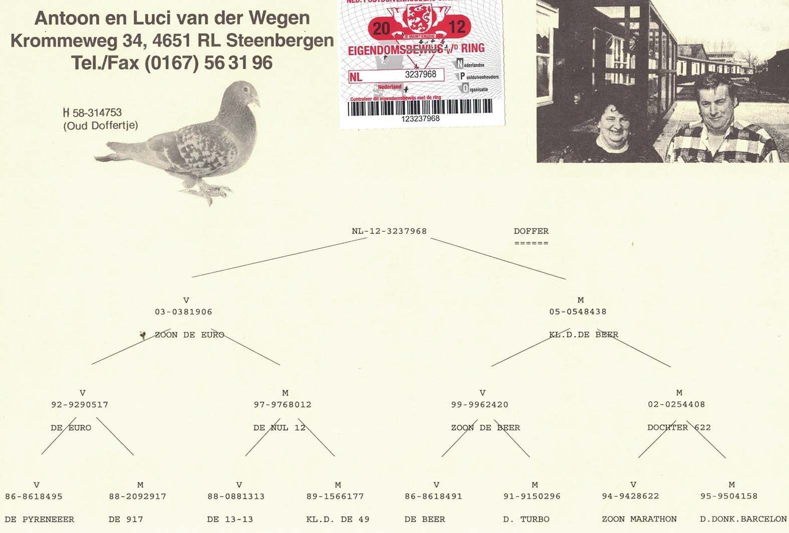 Breeder:100% VAN DER WEGEN A. & L. 100% 纯范德维根血系