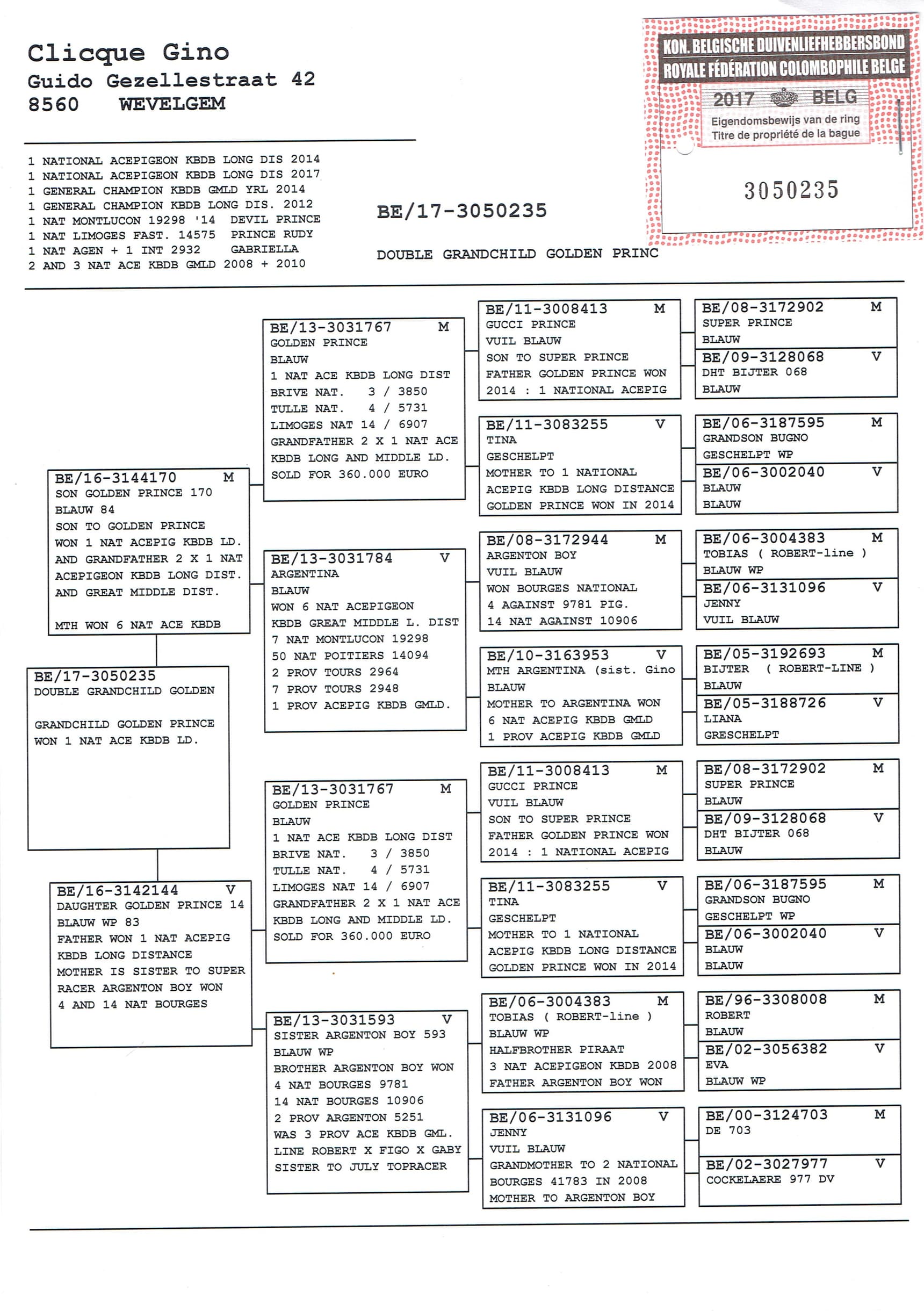 Father is “ Prince Gino “ BE17-3050235 M