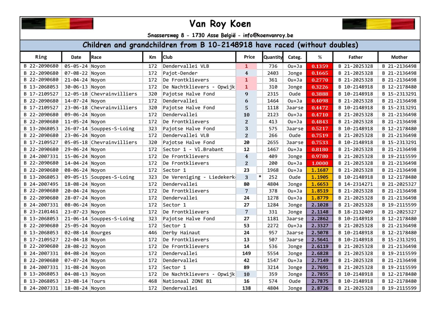 Breeder:VAN ROY KOEN 范路易·坤