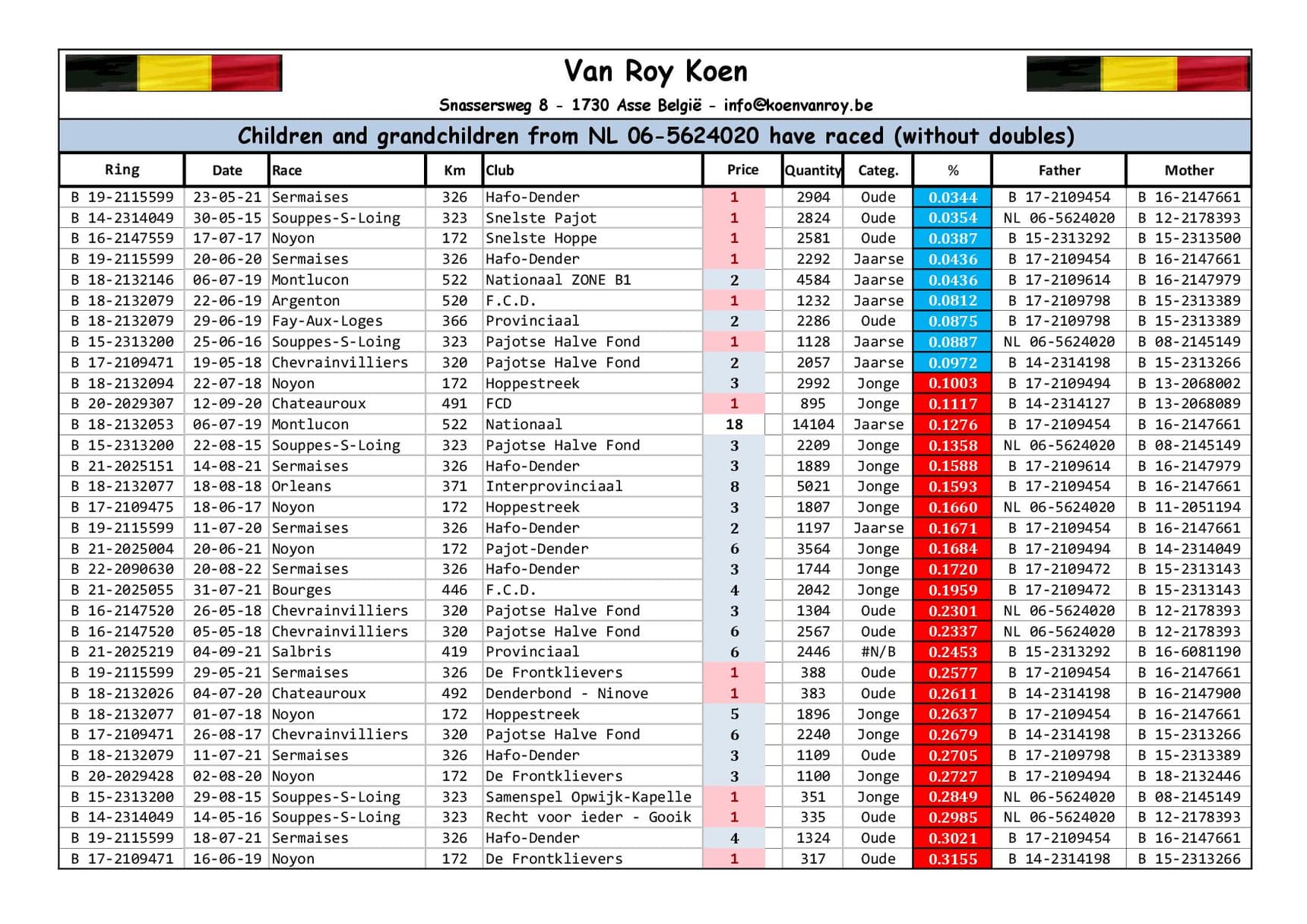 Breeder:VAN ROY KOEN 范路易·坤