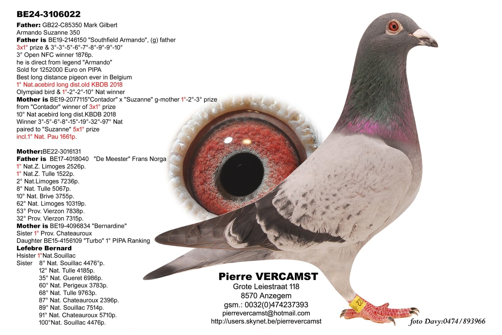 Mother is BE19-2077115"Contador" x "Suzanne" g-mother 1°-2°-3° prize