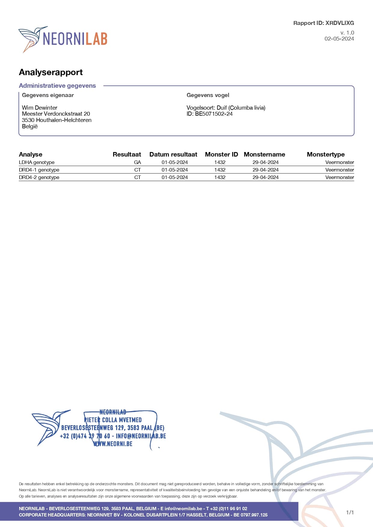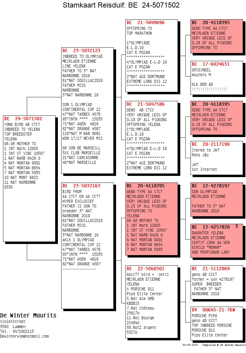 Breeder:DE WINTER MAURITS 莫里斯·得维特