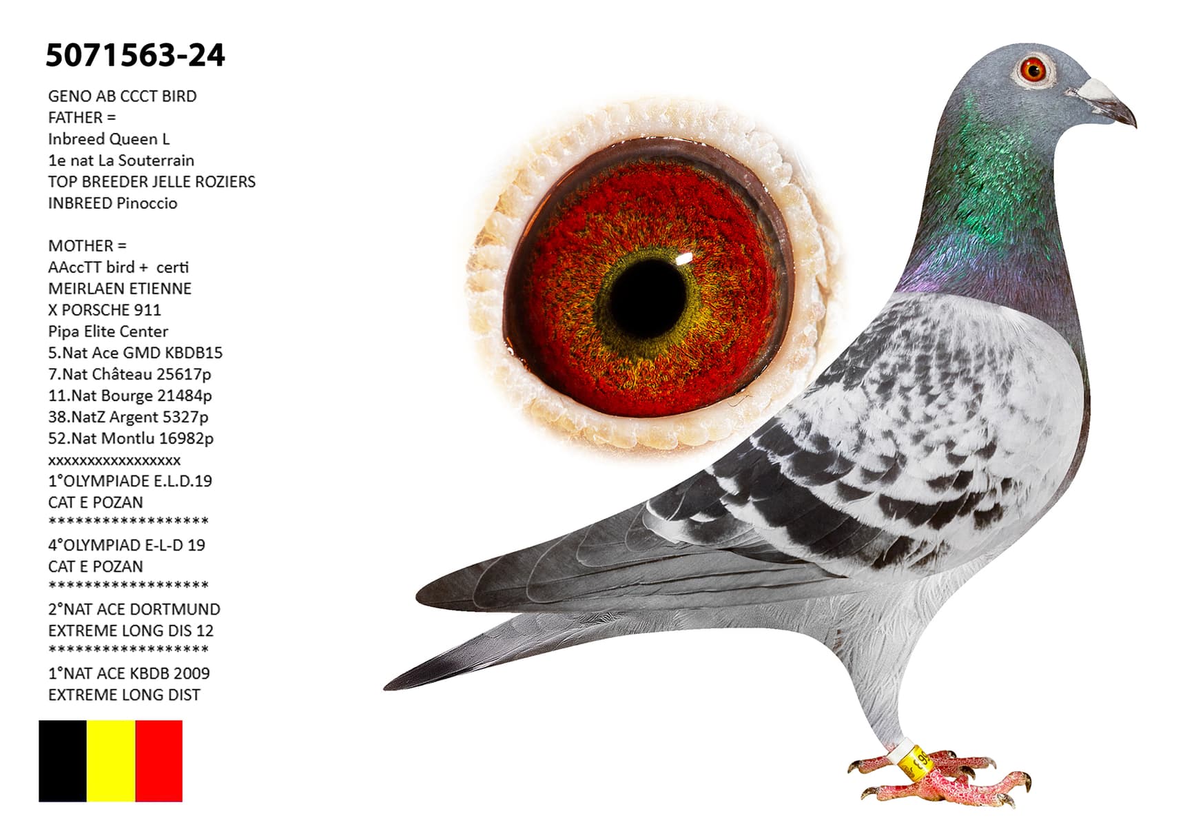 Inbred QUEEN L: 1 Nat. La Souterraine, top breeder JELLE ROZIERS