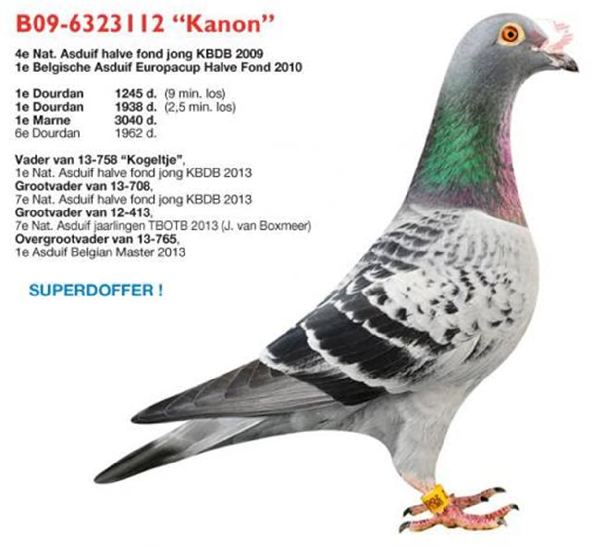Mother: daughter "FAVORIETJE" 4 Nat. Ace pigeon Allround Hermans-Hoekstra