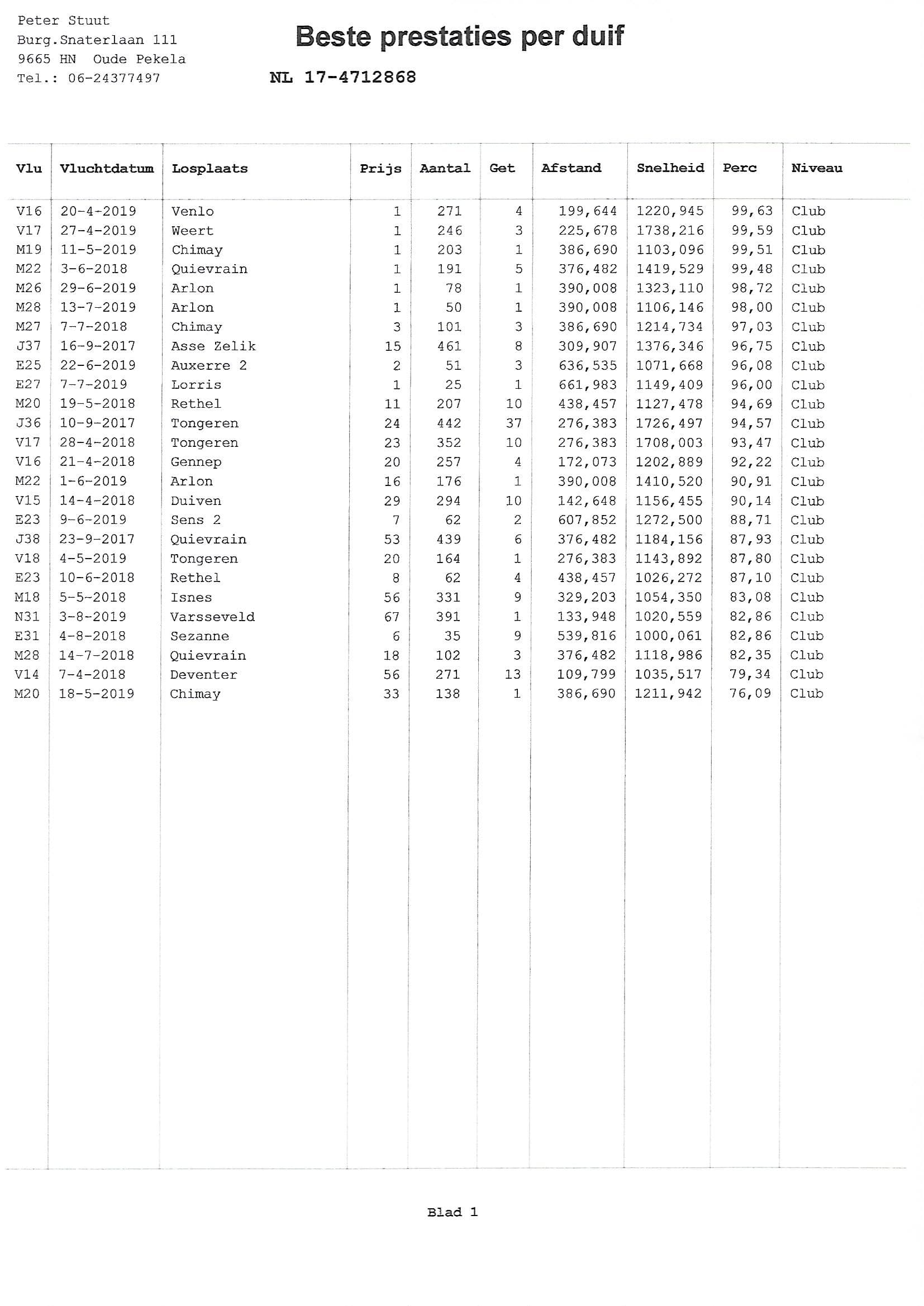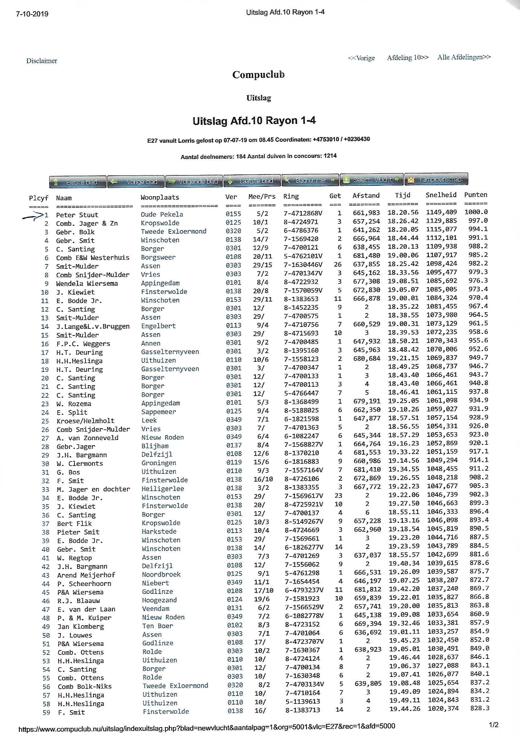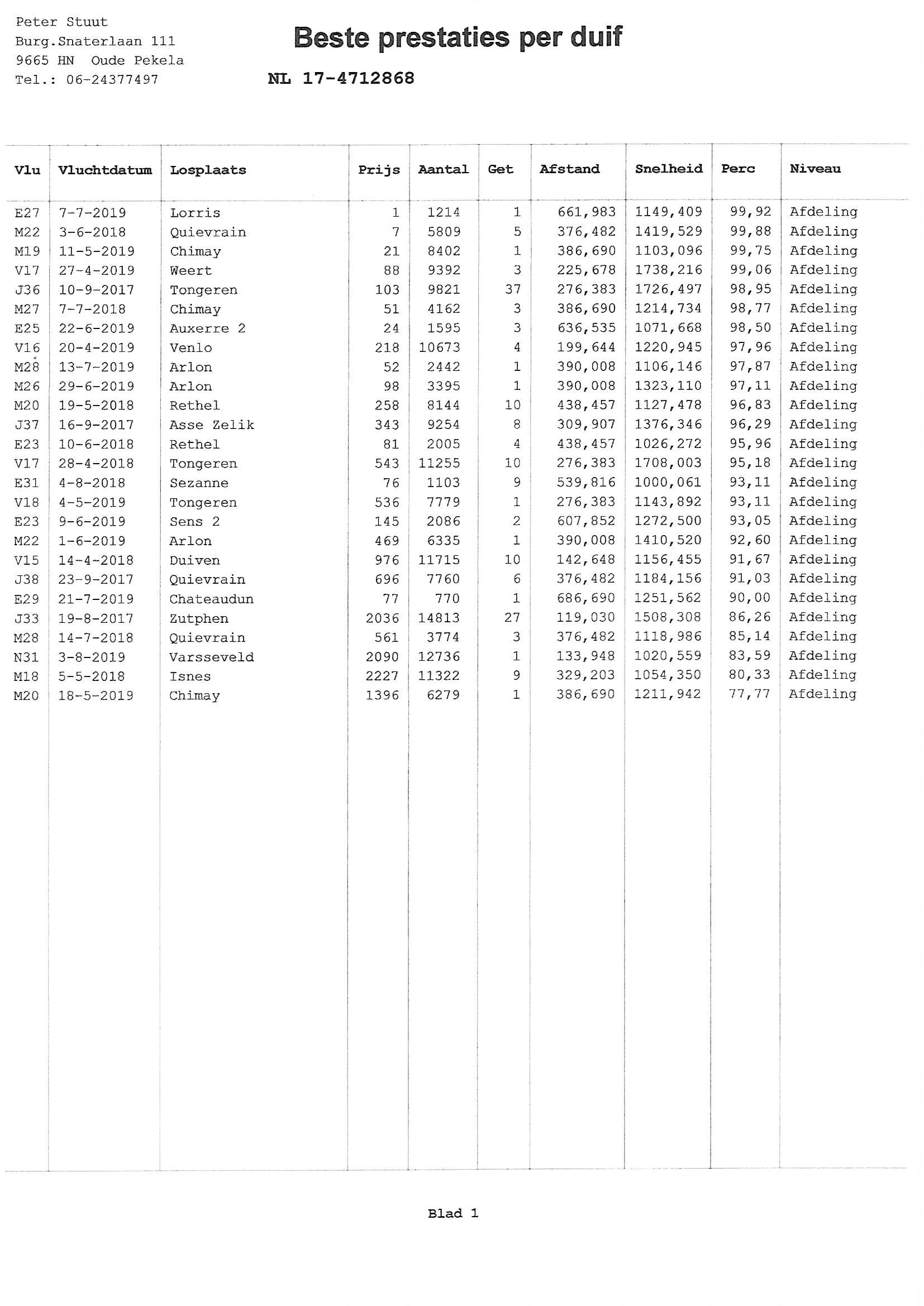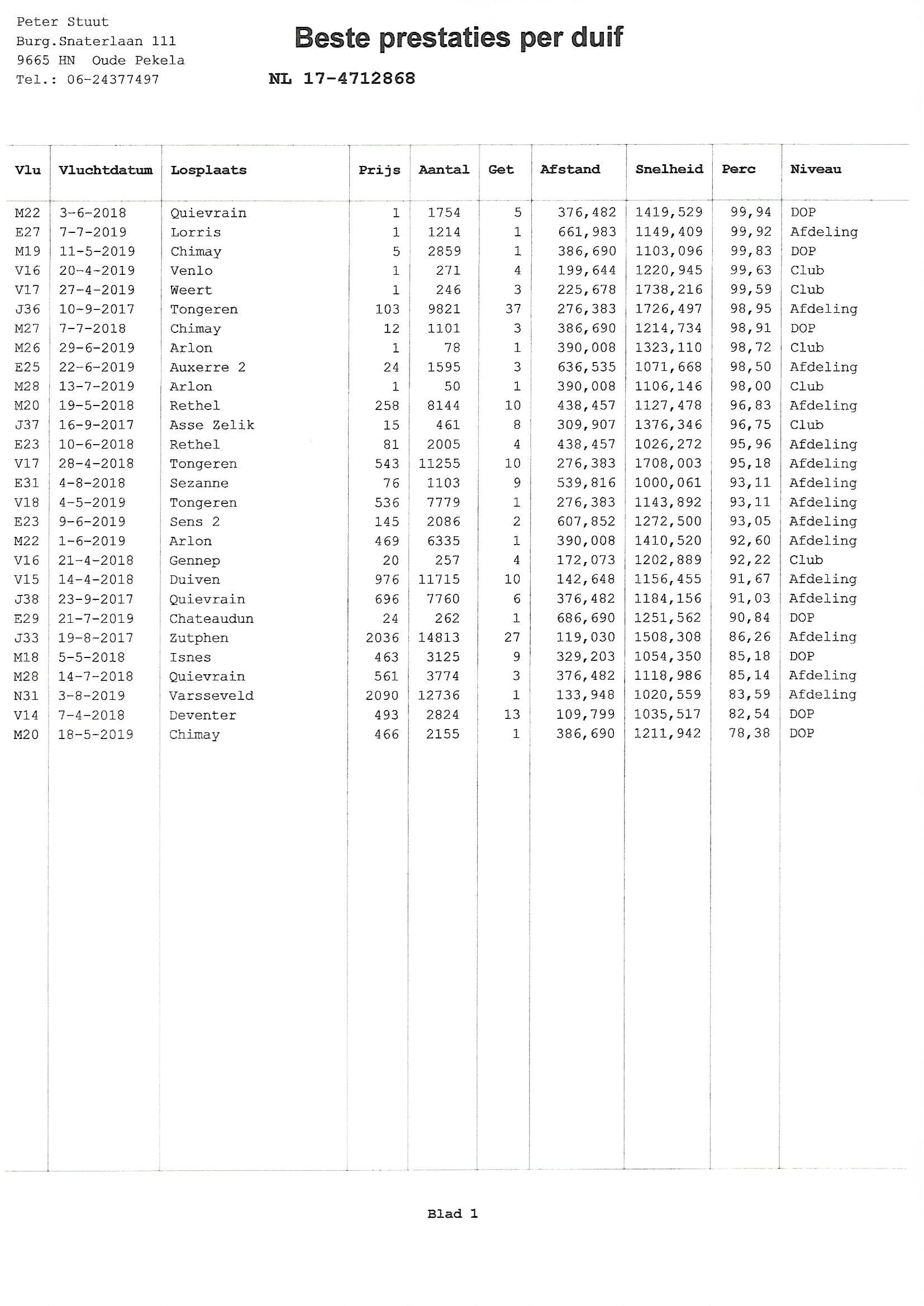 1 Nat. NPO Lorris N.U. 3,121b. 661km 4 Nat. NPO Sect. 4 6,086b.