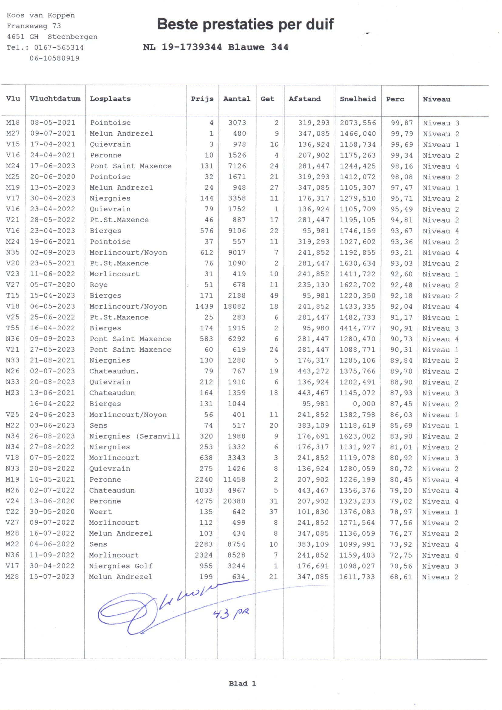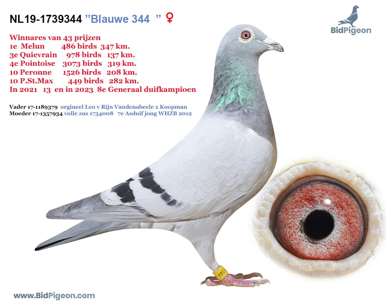 Moeder 17-1357934 volle zus 1734008 7e Asduif jong WHZB 2012 Dtr uit Blauwe Vierzon 1017742 Broer Cleopatra 1e 12.662 duiven x 1187509 volle zus 15268 vader NPO Blois