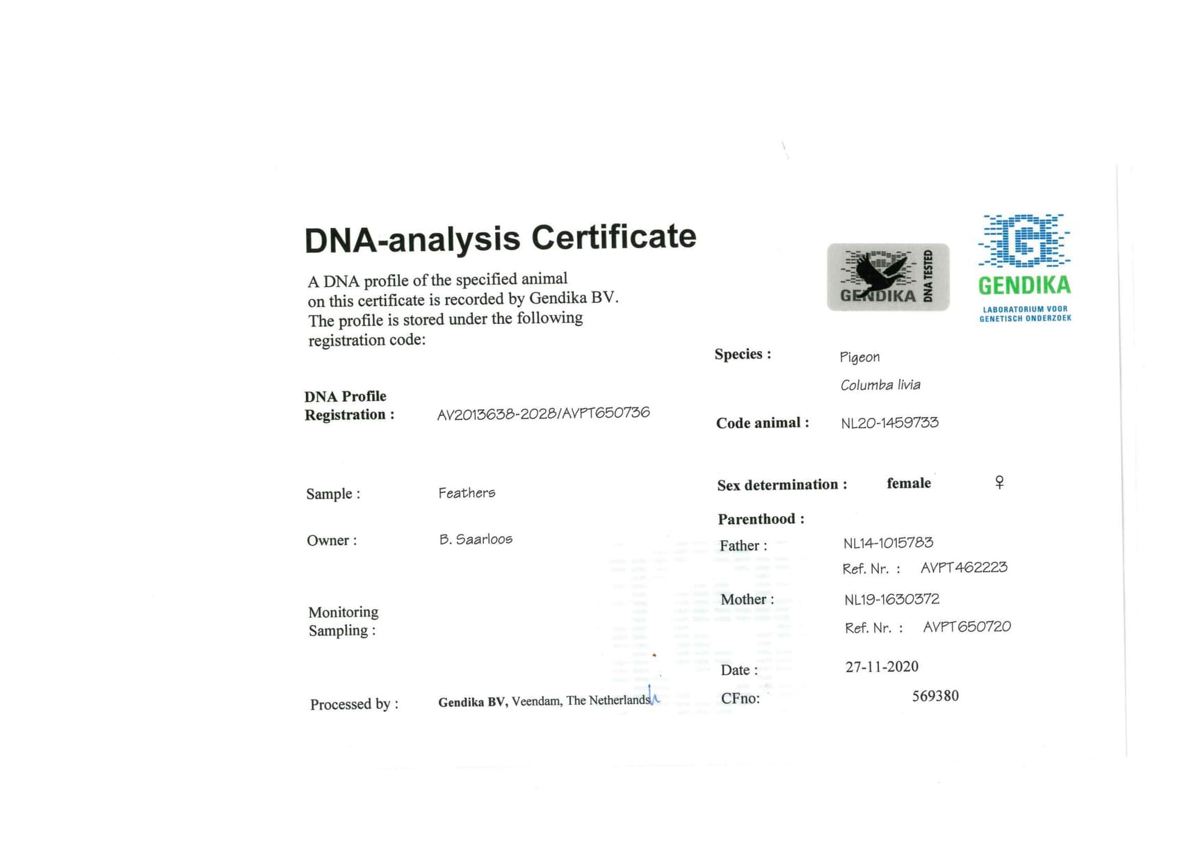 “D’n Arie” NL07-1765573 bred in 2 generations: