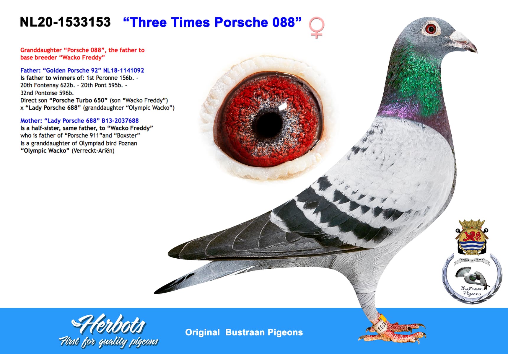 Is a granddaughter of Olympiad bird Poznan “Olympic Wacko” (Verreckt-Ariën)