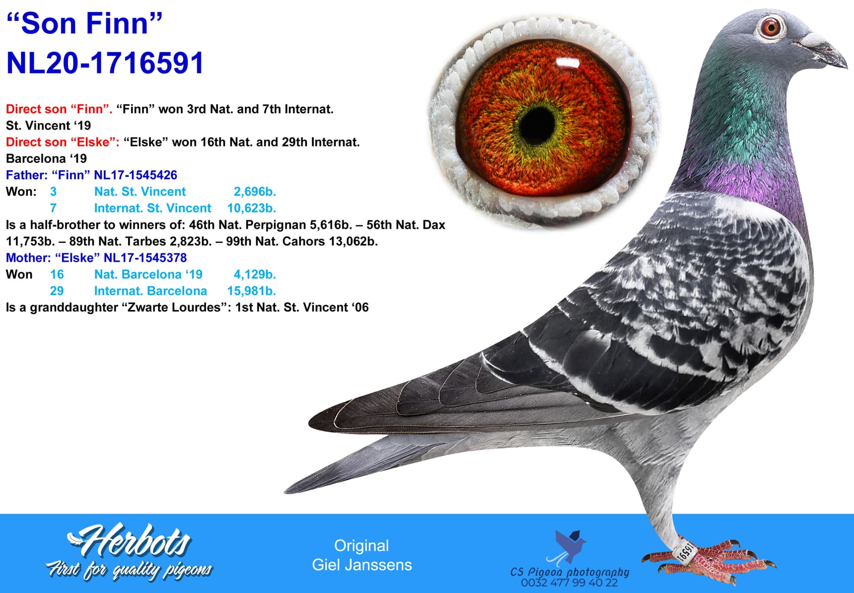 Direct son “Finn”. “Finn” won 3rd Nat. and 7th Internat. St. Vincent ‘19