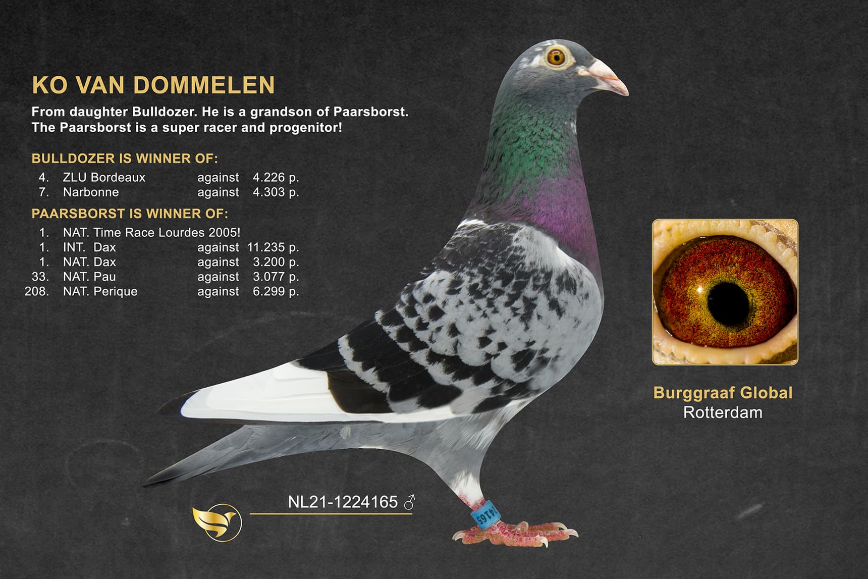 Specially from the breeding loft of Burggraaf Global. This pigeon has not been raced!