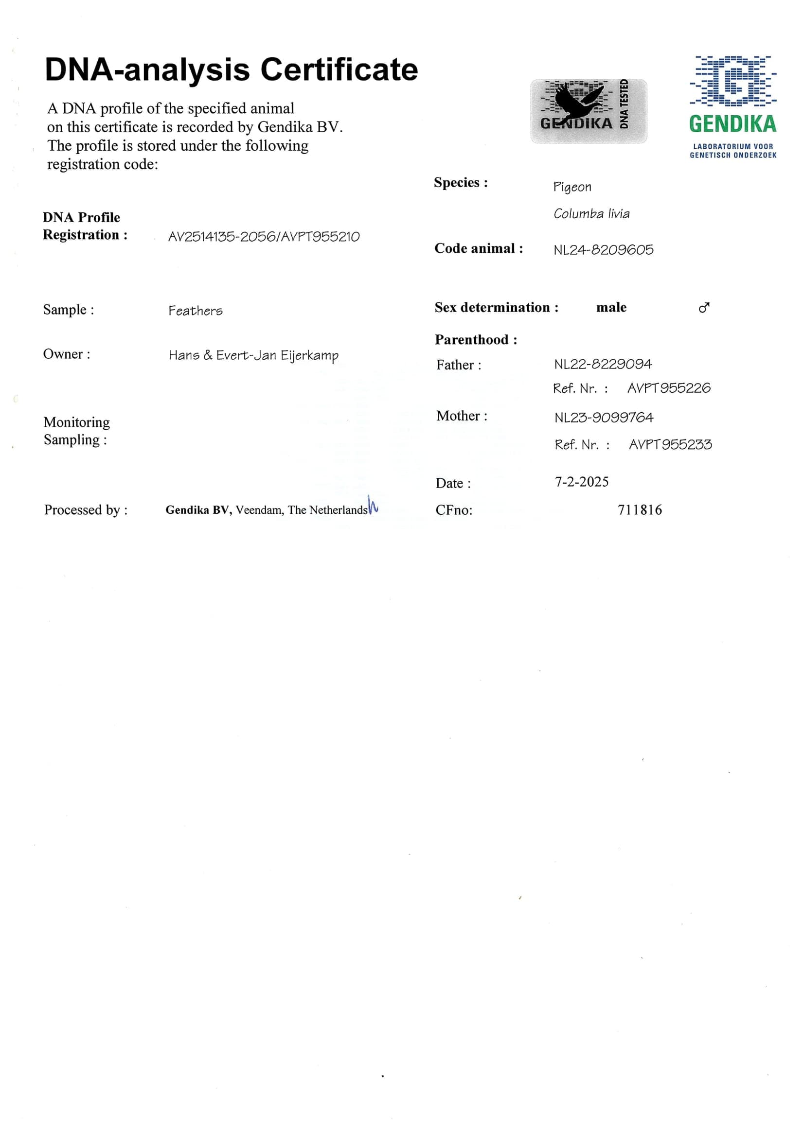 Father: “Nestbrother Zoe” NL22-8229094