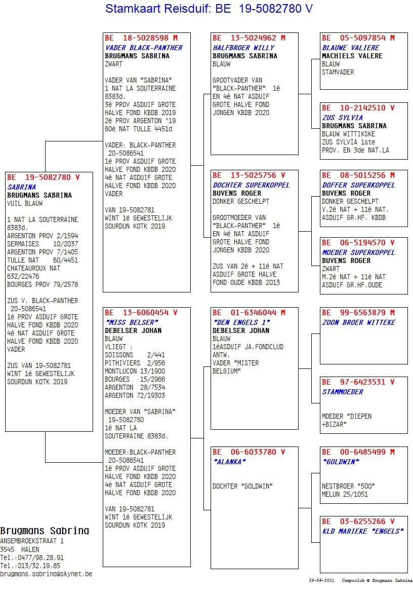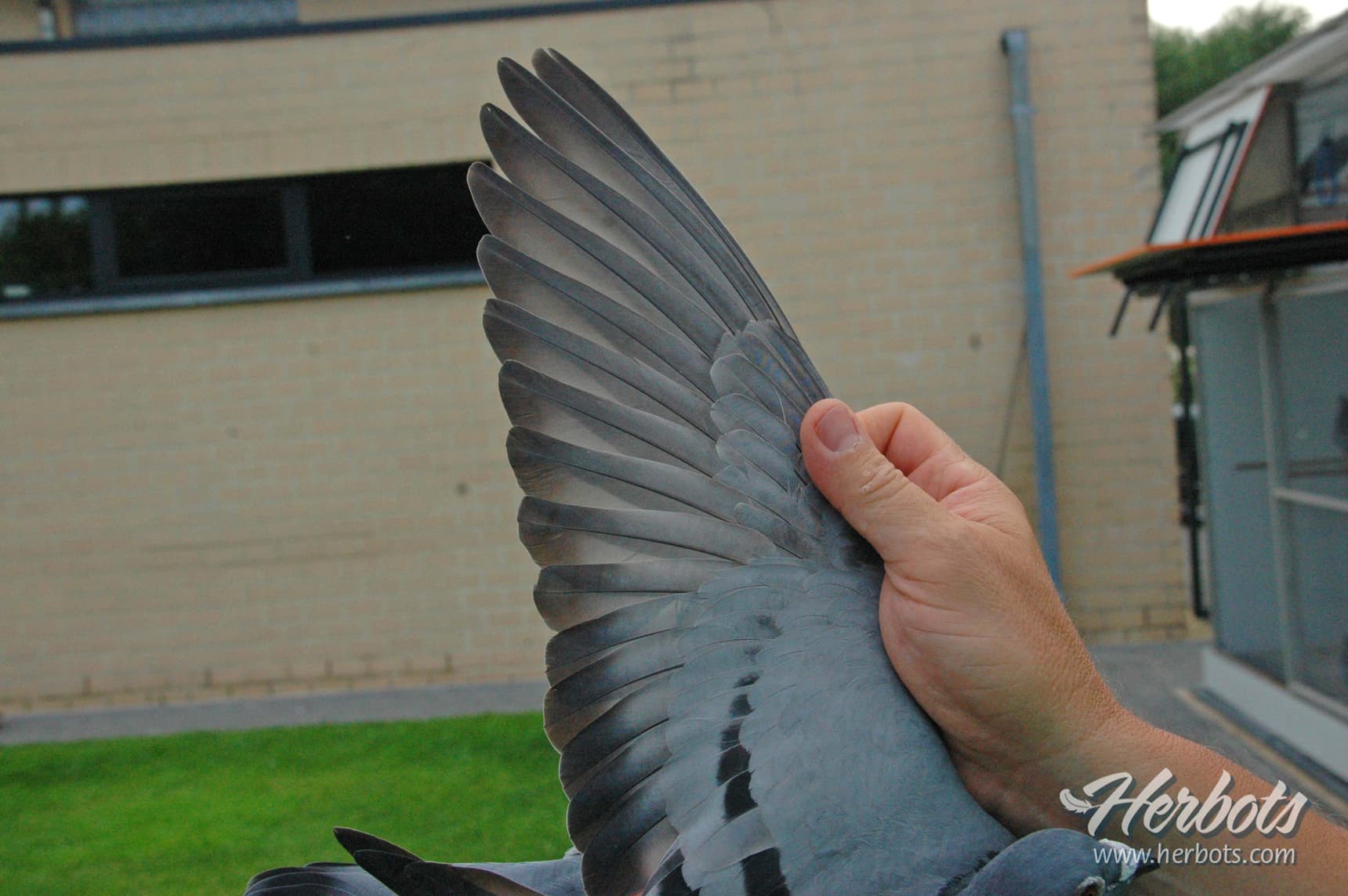 “Sabrina” is a very beautiful hen. Average of type and blessed with an iron carcass and strong muscles. The fact that she was basketed as 1st signed let us suspect that she already proved herself before and we were right about that. The following results were already set by her: 3rd Provincial Ace bird KBDB youngsters, 2nd Provincial Argenton 2019, 60th National Tulle 2020 and 7th Provincial Argenton 2021.