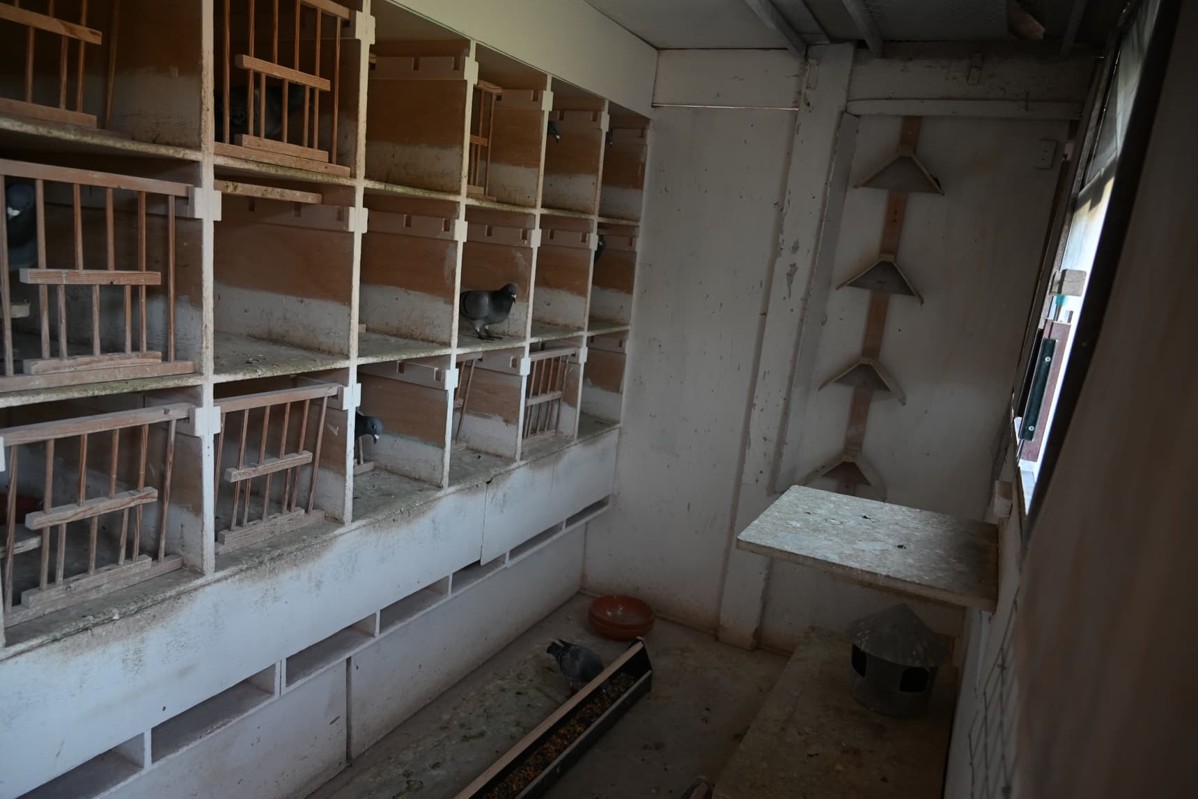 Racing with the hens was also a search for the best method for me. To avoid mutual mating, I had a small aviary installed in front of my pigeon department. Generally, this is not too bad, but you still have to be attentive as a fancier. During the day, the hens are in the small aviary and at night they sleep in their "night loft".