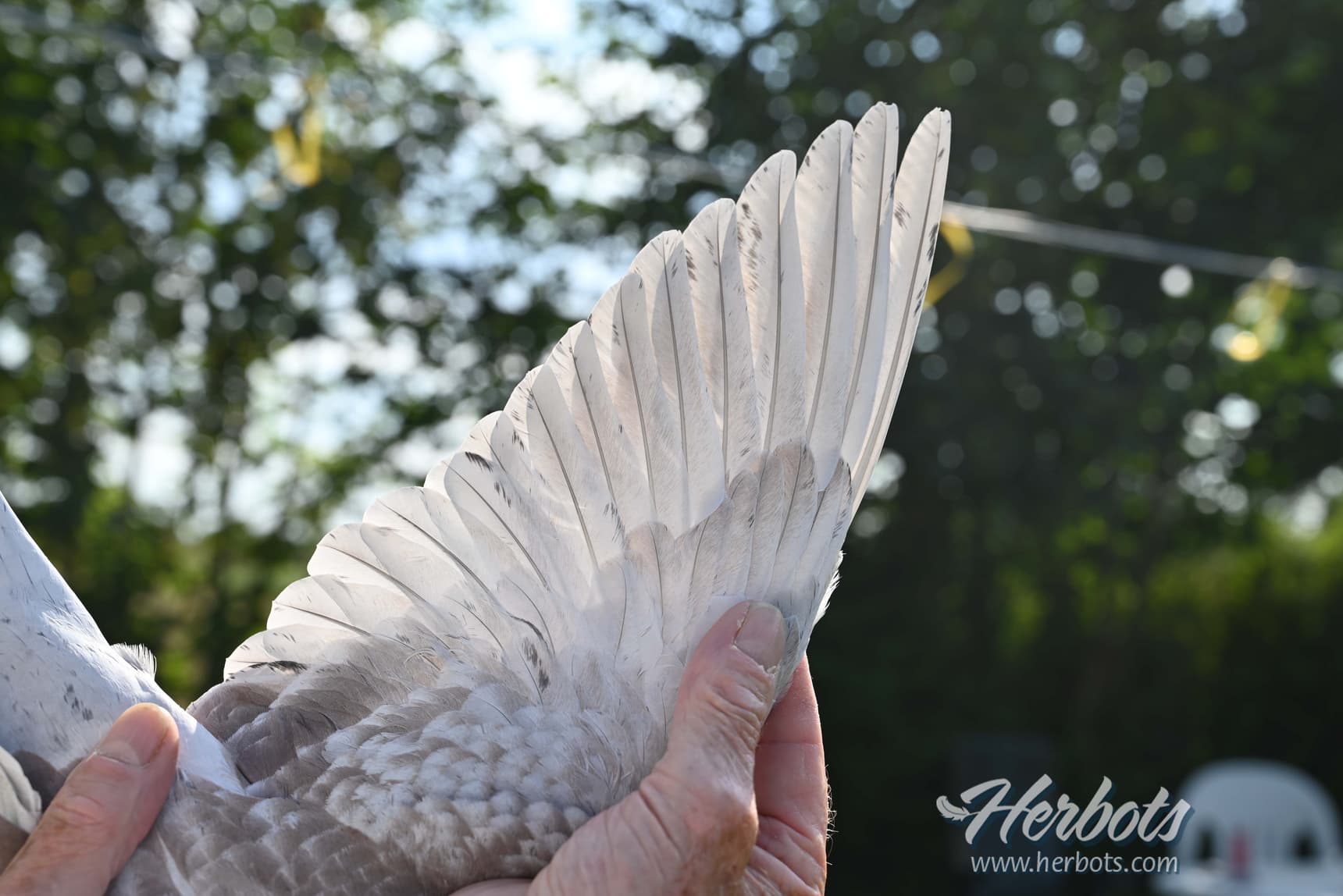 The racing team is being coupled on the 2nd of February and can breed for a few days. Afterwards when the weather circumstances are good enough to train, there will be another coupling of a few days. After the season the racing pigeons don’t breed. So it is perfectly normal that a 5-year old racing pigeon never had to raise youngsters.