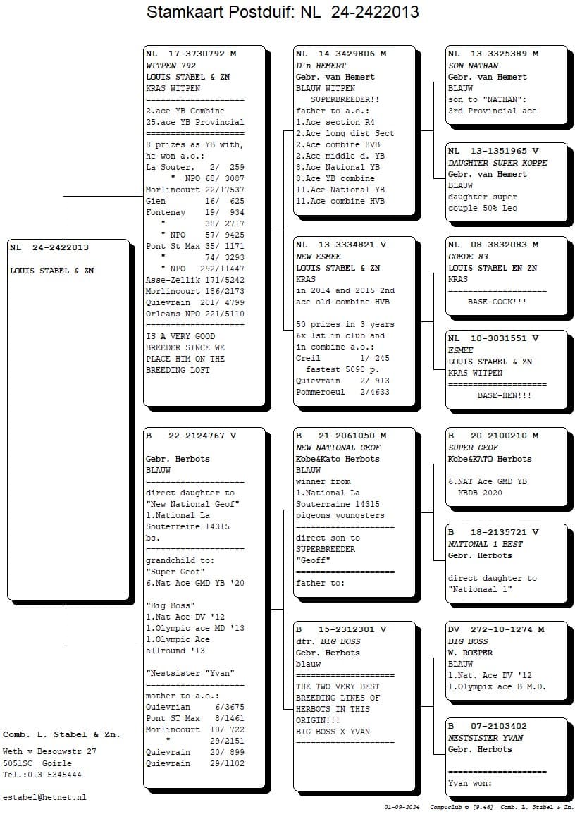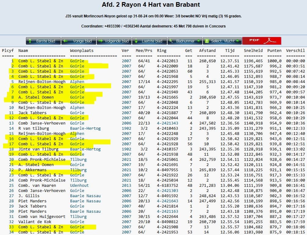 Grandson of NEW NATIONAL GEOF wins first prize on Morlincourt against 798 pigeons with Comb. Stabel L.&son