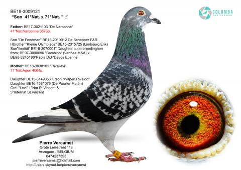 F: Son Rode Barca NL20-170620218th intnat acepigeon 2017-2019M: Dtr Ramba NL06-144195