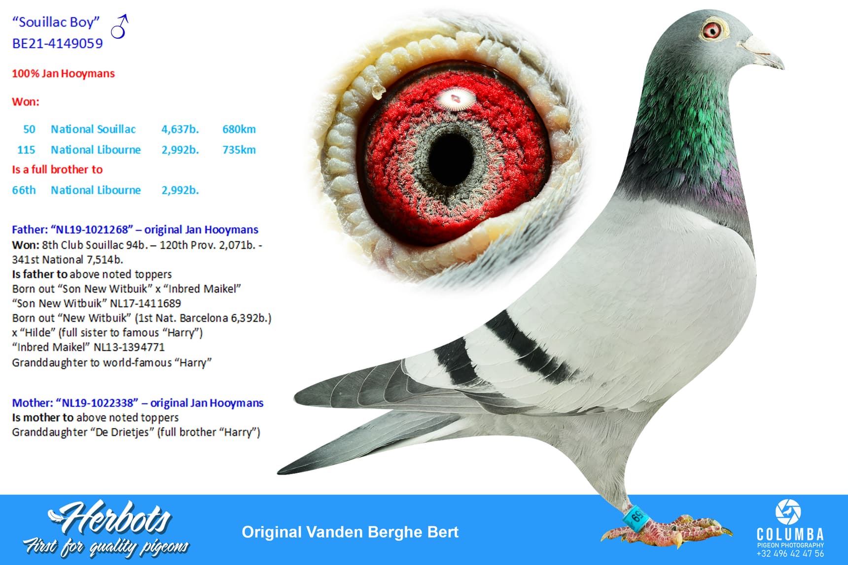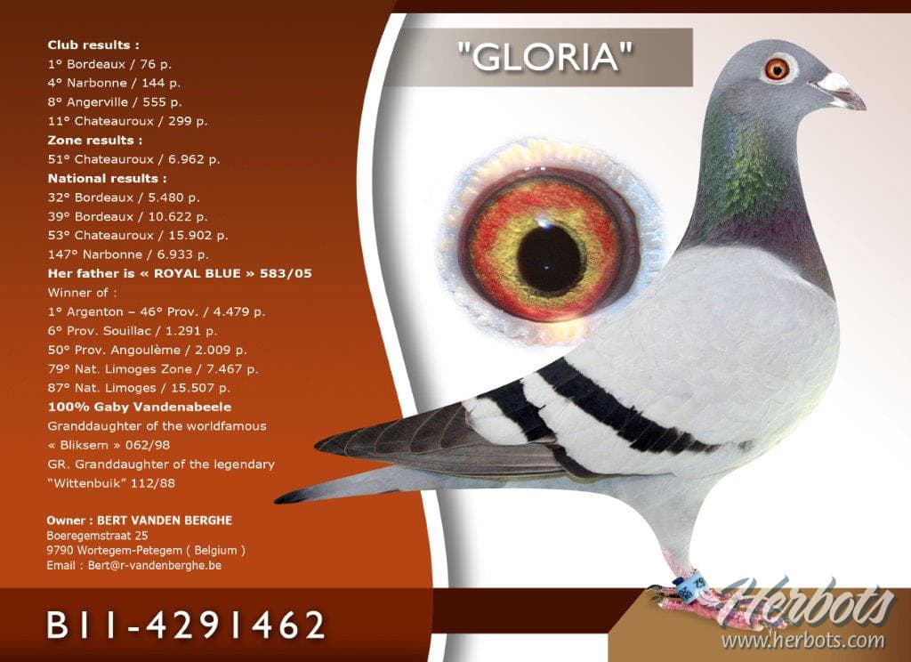 Icons such as Fyter, Gloria were direct Gaby pigeons, but at a later stage other toppers came to the fore that sprung from this golden breeding vein. For instance, Den Boswachter (1st national Pau) is a direct Jan Hooymans pigeon with also Vandenabeele blood in its veins.