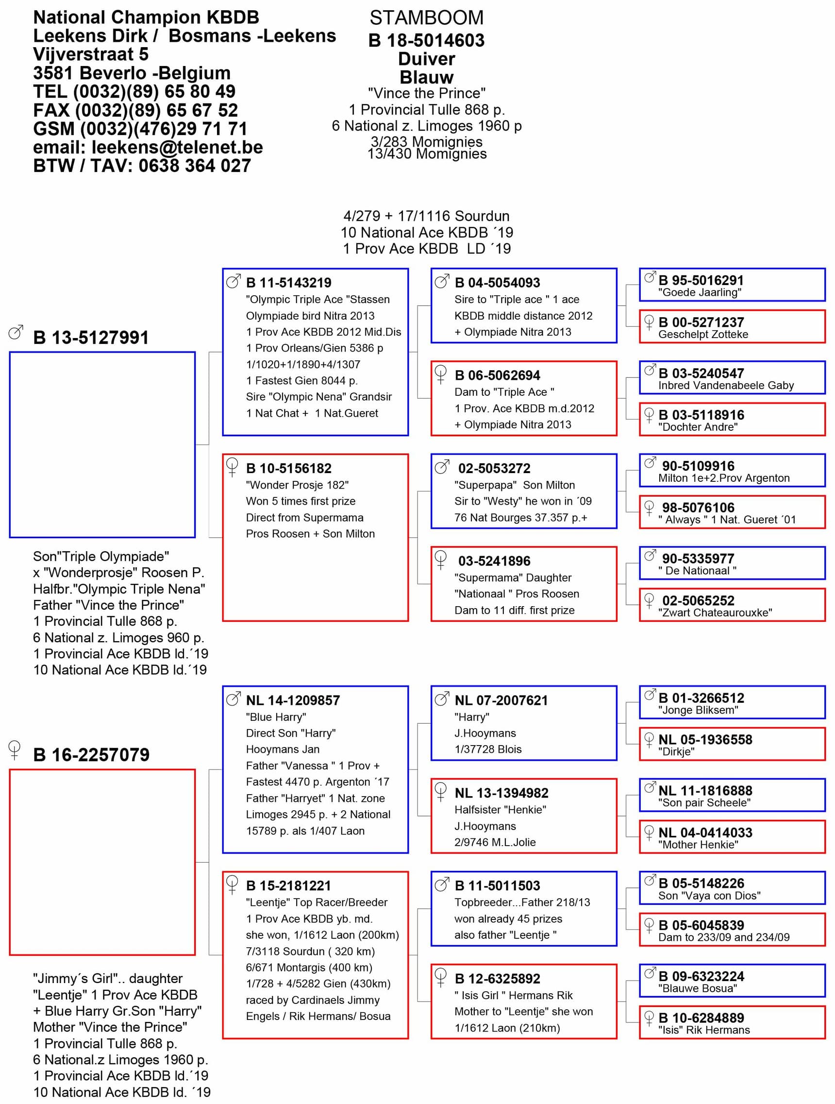 2 Olympic Pigeon KBDB “allround” 100 km – 650 km “ Olympic Triple Nena” 2090027-14  ‘17