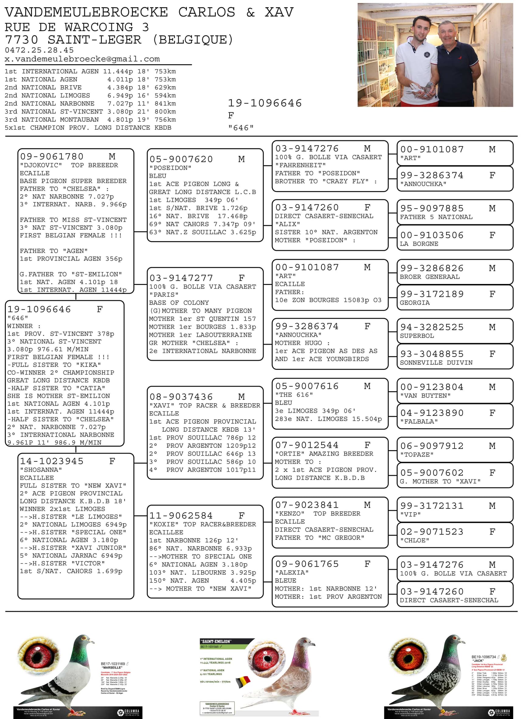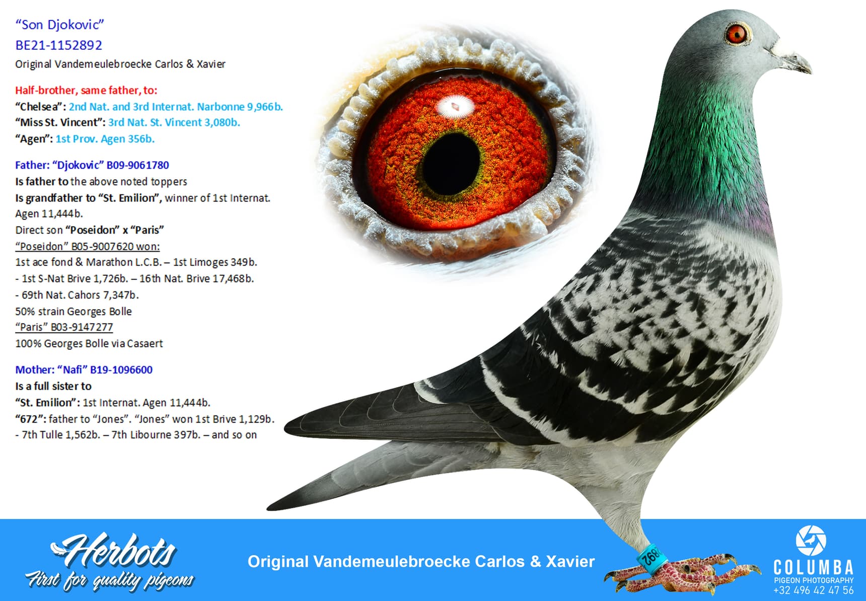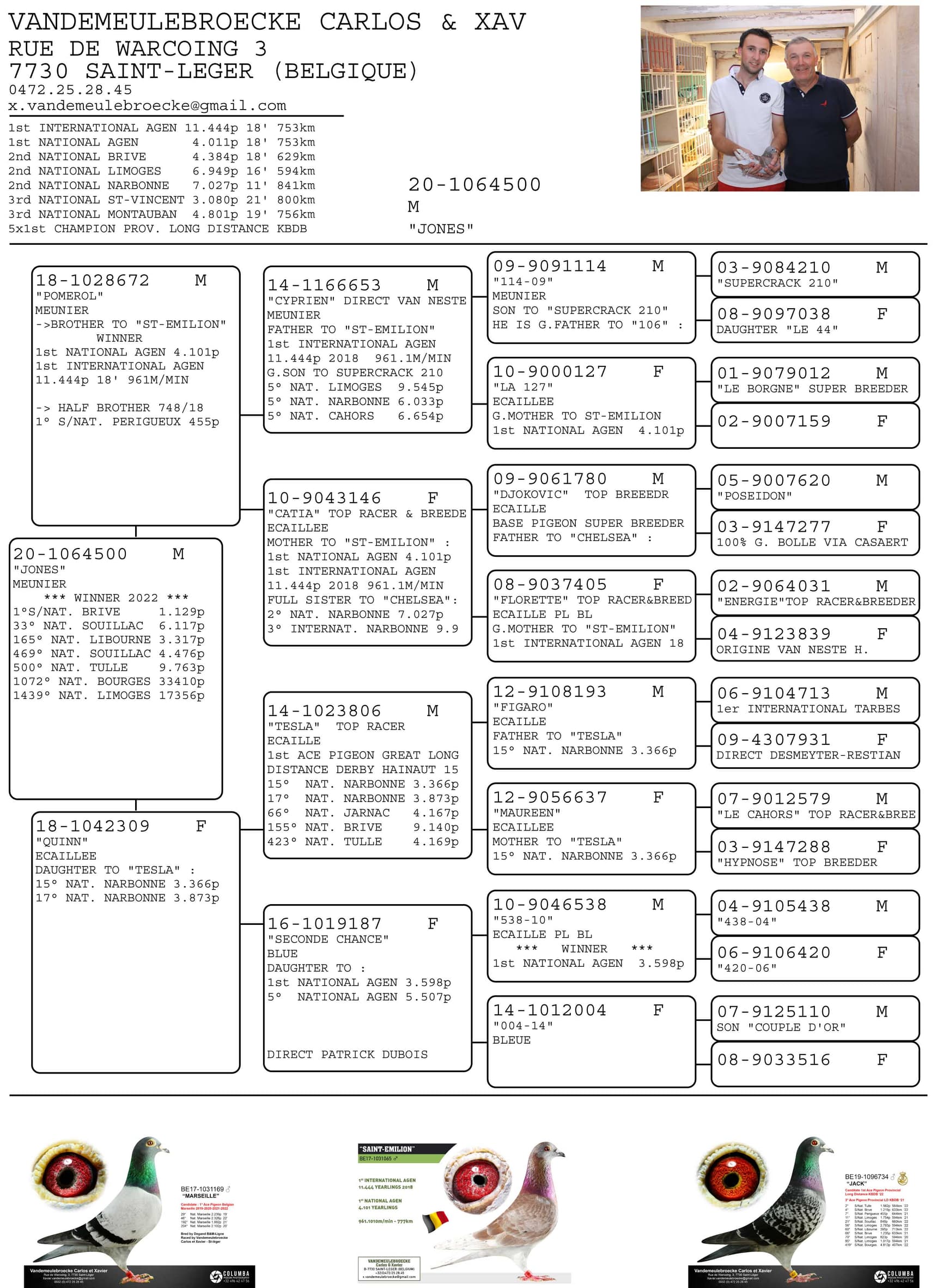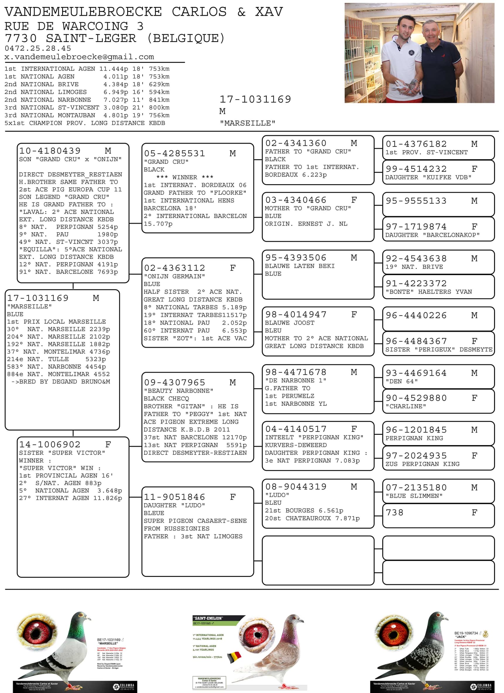 In a limited auction on Pigeons Bids, Carlos and Xavier offer some children of their best pigeons for sale. Top quality first-hand from a loft that manages to achieve top performances year after year. An asset to every breeding loft !
