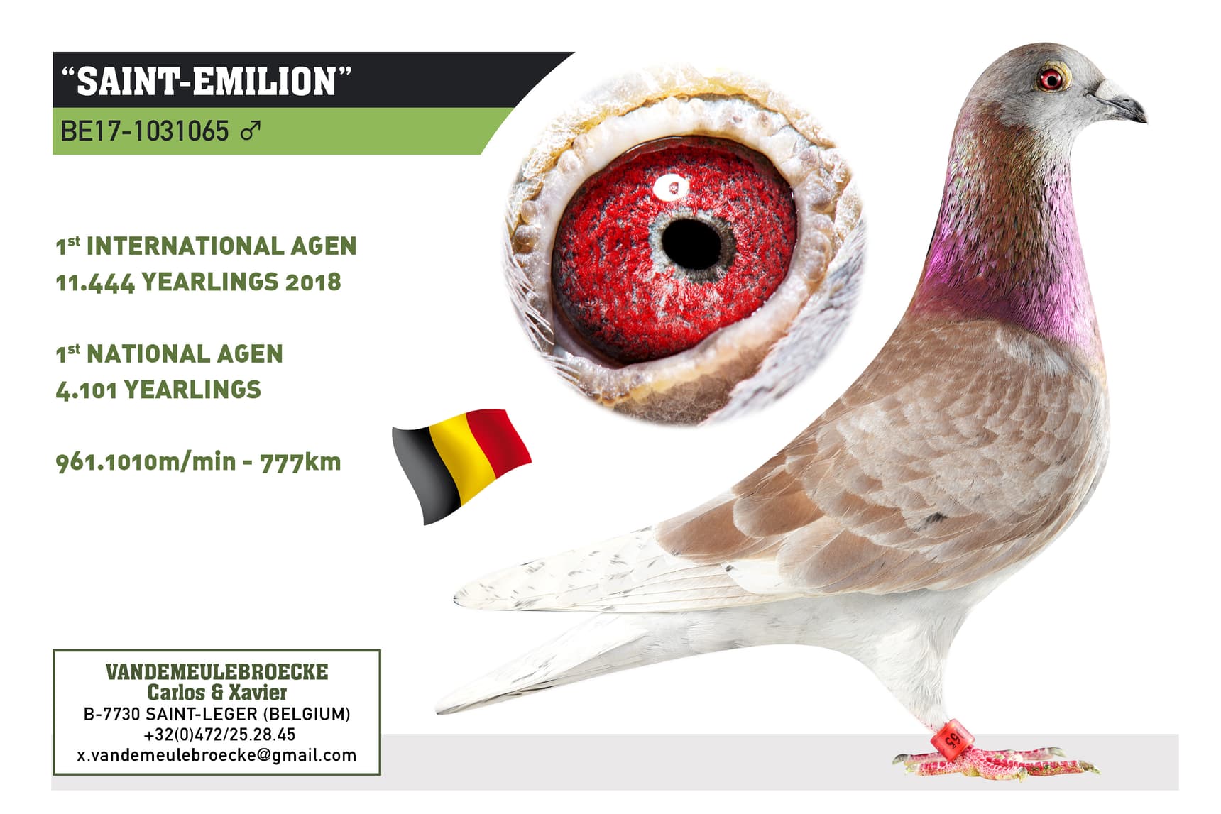 It was a hard, fair flight in very warm temperatures from Agen in 2018. International 11,444 yearlings were basketed and the pigeons were released at 8am. At 21h29, this beautiful red cock dived like an arrow out of a bow onto its loft in Saint Leger with an international win as its reward. With a minute speed of 961.10 metres per minute an illustration that it was no piece of cake and only the super talented could win this.