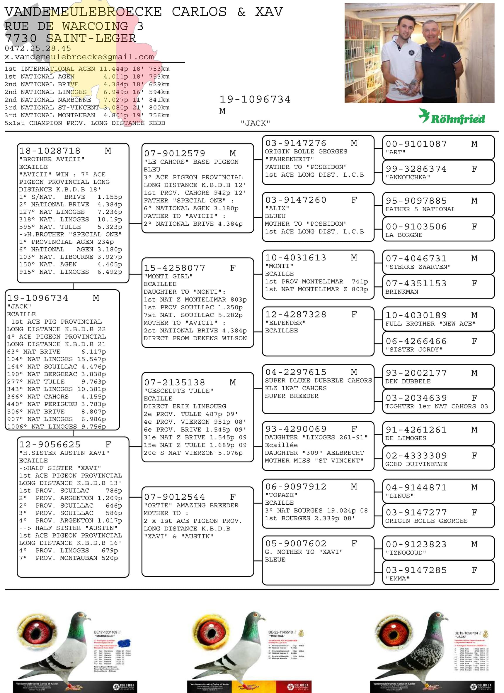 Le Cahors fut 3ème As-Pigeon Provincial Long distance KBDB 2012 & Co-Winner 1er Championship Provincial long distance KBDB 2012 et est un top reproducteur car il est :