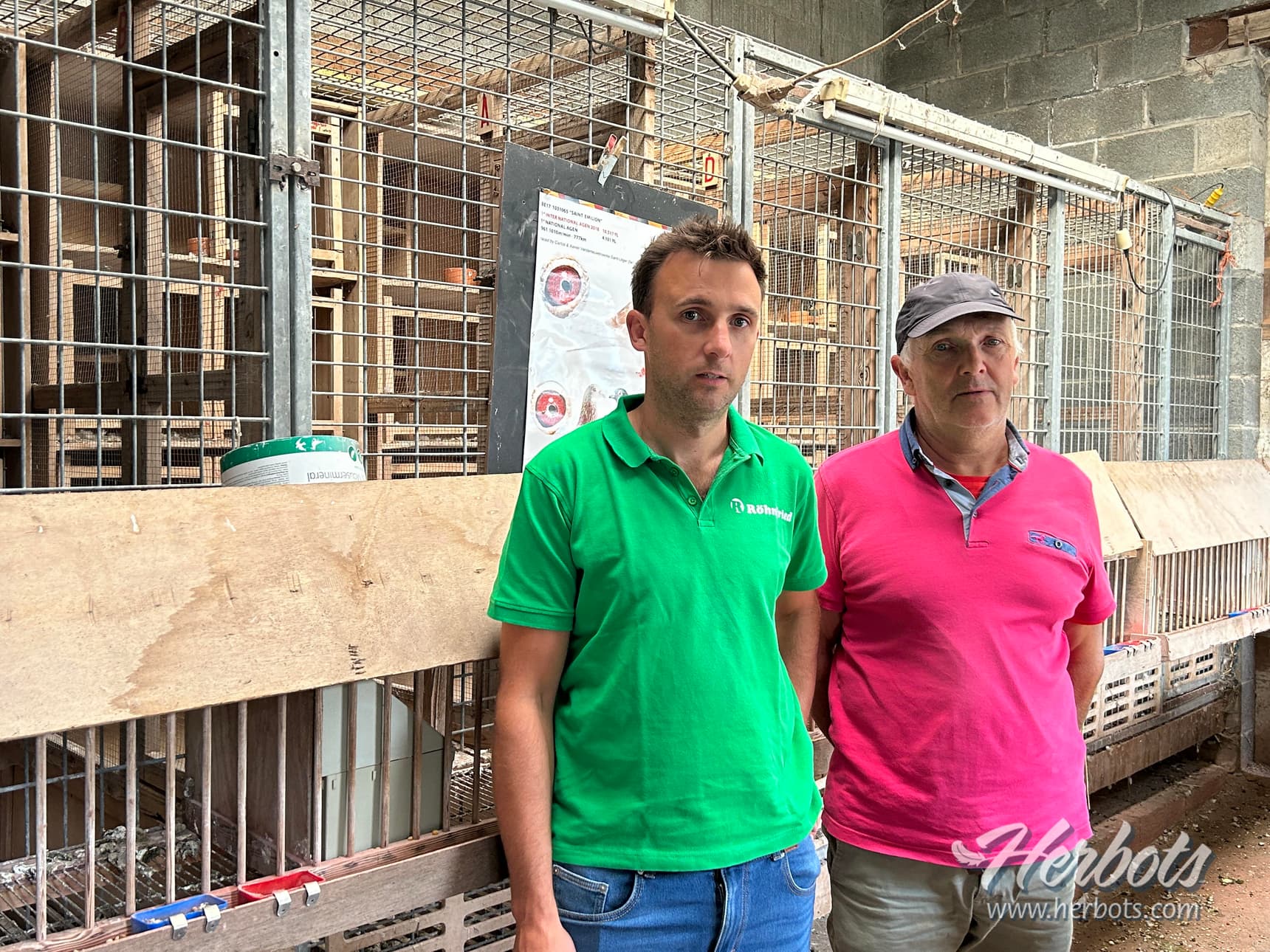 Le tandem VANDEMEULEBROECKE est composé de Carlos, 61 ans, et de son fils Xavier, 37 ans. Carlos est retraité depuis le mois de mai de cette année, mais aide son épouse Catherine, agricultrice et toujours active dans leur exploitation agricole. Xavier, ingénieur, en couple avec Margaux et père de 2 enfants (Anouk, 7ans et Gaspard, 4 ans) a construit sa maison, juste en face de la ferme de ses parents où sont situés les pigeonniers, et n’a donc que la rue à traverser pour soigner les pigeons, ce qui est très pratique, pour gérer la colonie. Les tâches sont bien réparties entre Carlos et Xavier, et ce en fonction de leur emploi du temps respectif.