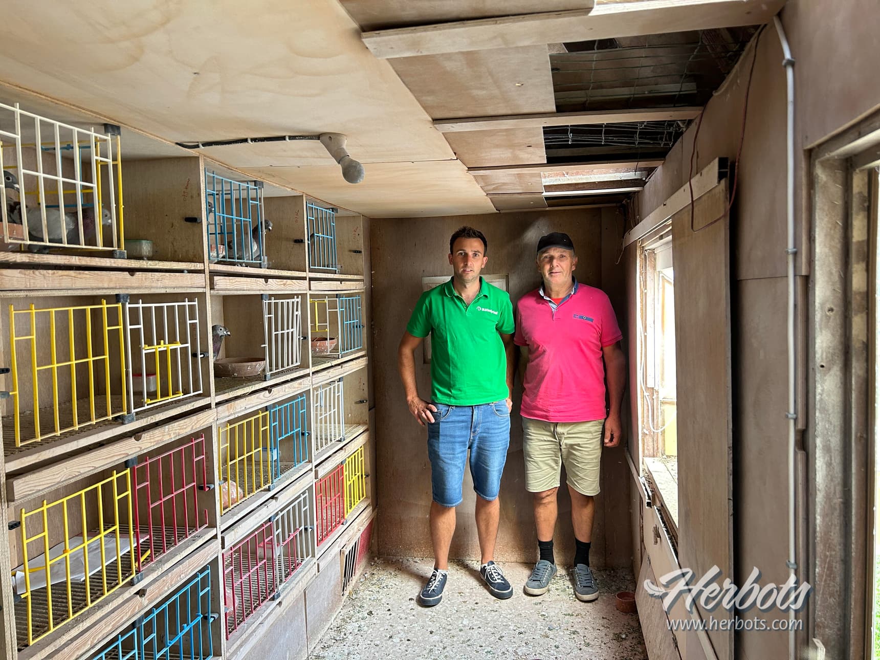 Carlos est colombophile depuis 1976, et jouait alors les concours de vitesse et demi-fond, Xavier qui baigne dans ce milieu depuis sa naissance, a commencé en 1997, par se faire la main en jouant les jeunes du 2ème et 3ème tour de son papa, tout en donnant un coup de main à Sébastien Casaert, leur voisin de l’époque, pour les soins, volées et mises en panier des pigeons, et ce au début des années 2000, lorsque celui-ci habitait encore à Saint-Léger. Le fait de côtoyer un champion de la trempe de Sébastien Casaert fut un bon écolage pour Xavier car difficile de trouver meilleur professeur. En 2005, Xavier s’impliqua de plus en plus dans la gestion de la colonie de son papa, suite au manque de temps de celui-ci qui travaillait à temps plein comme ouvrier chauffagiste et aidait en plus, son épouse dans l’exploitation agricole. Au fil des années, Xavier et Carlos allongent la distance et se tournent vers le fond et ensuite le grand fond. En 2012, Xavier prit sa première licence, et joua les concours avec sa propre colonie, à Evregnies, village situé à quelques kms de St-Léger. Puis en 2020, le tandem VANDEMEULEBROECKE Carlos & Xavier fut constitué, Xavier ayant décidé de construire sa maison, en face de la ferme des parents.