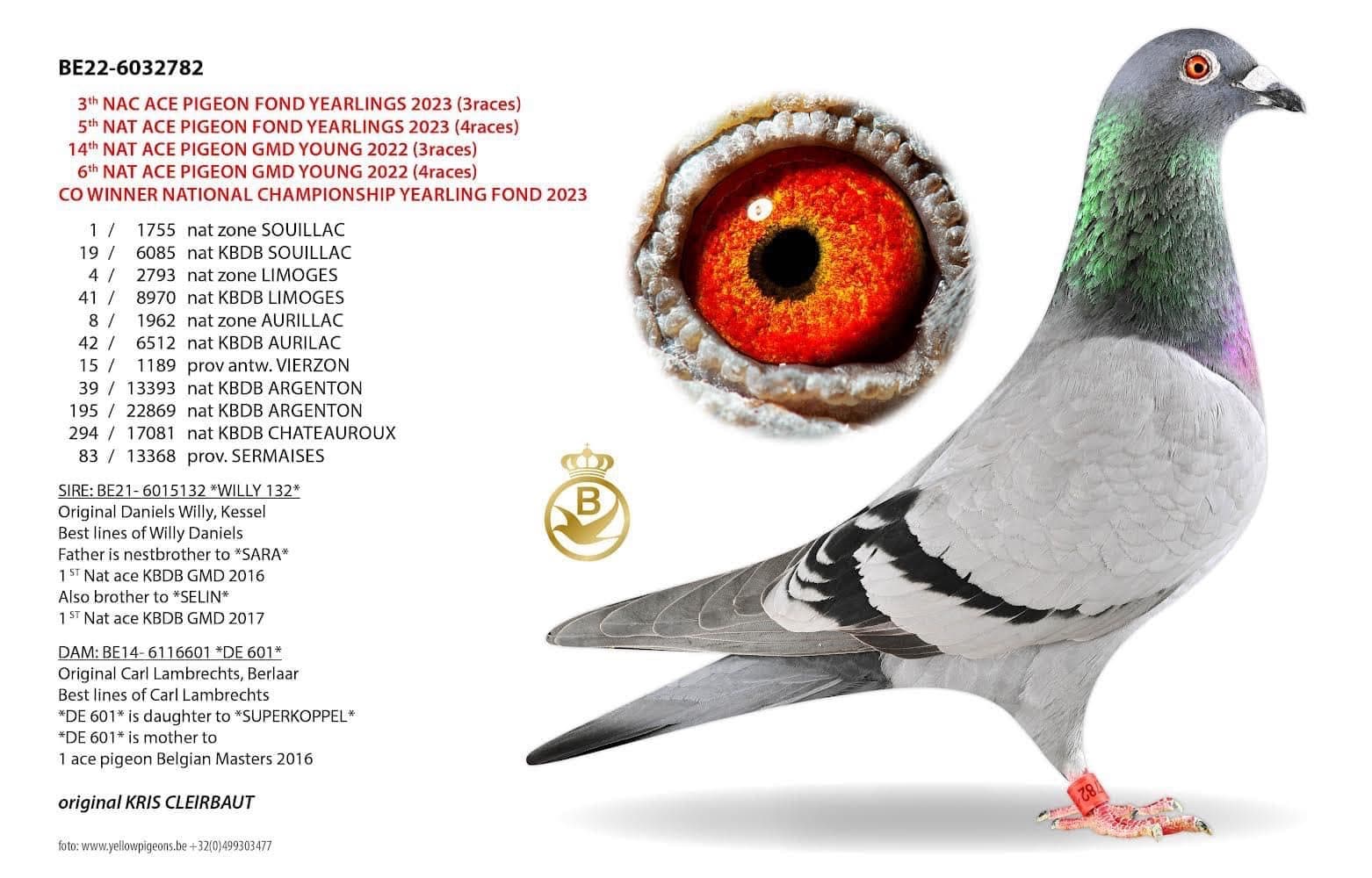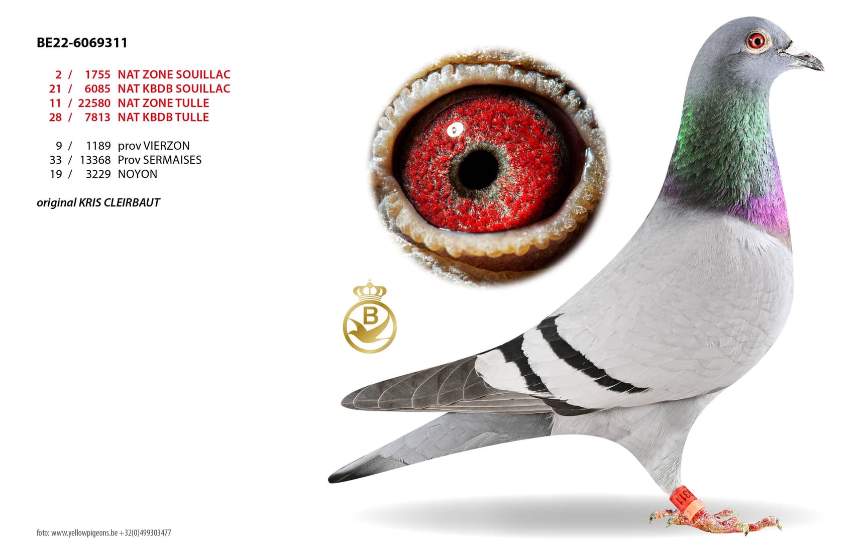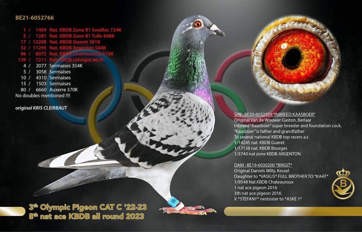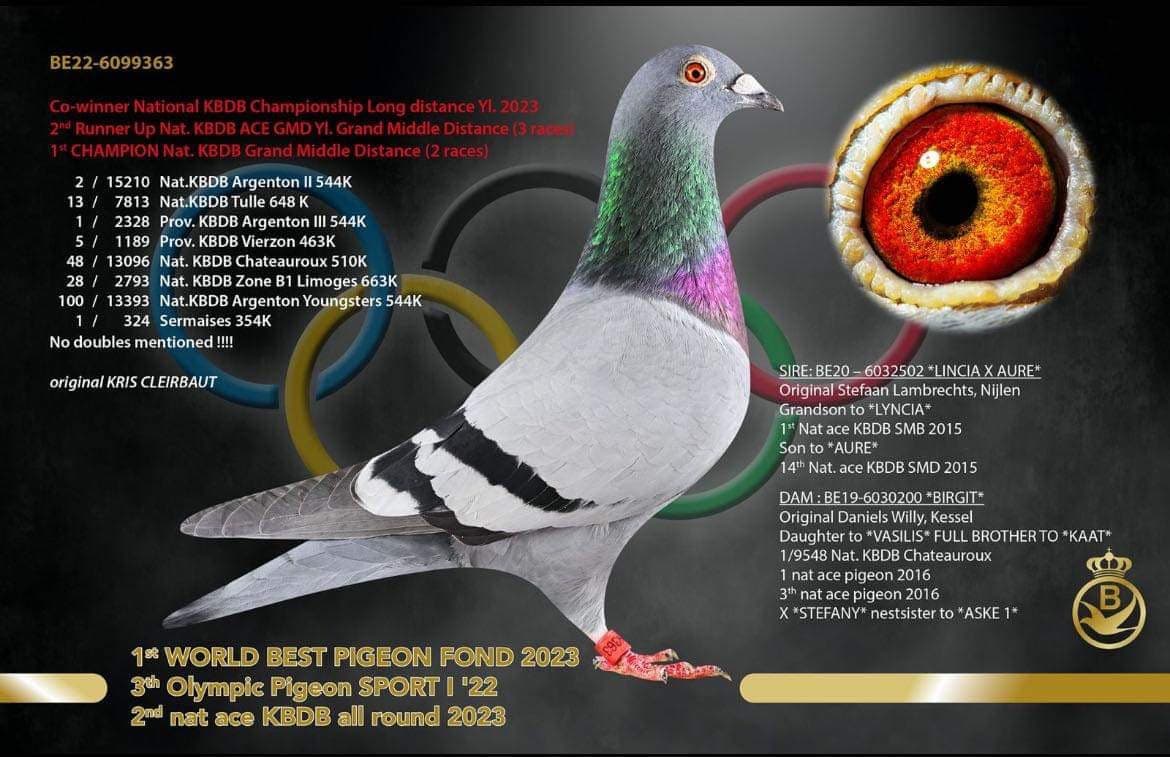 Kris poursuit : "Le succès dans la colombophilie repose sur de nombreuses facettes. Premièrement, vous devez avoir plus que de la qualité à votre actif et nous l'avons trouvé entre autres avec Willy Daniels (son type est dominant dans mon pigeonnier) soutenu par des pigeons de Stefaan Lambrechts, Carl Lambrechts, Juul van Looveren, Rudy van Reeth, Danny Van Dyck et le meilleur éleveur "Olympic Jan" (un pigeon allemand de l'Olympiade avec beaucoup de sang de Heremans).