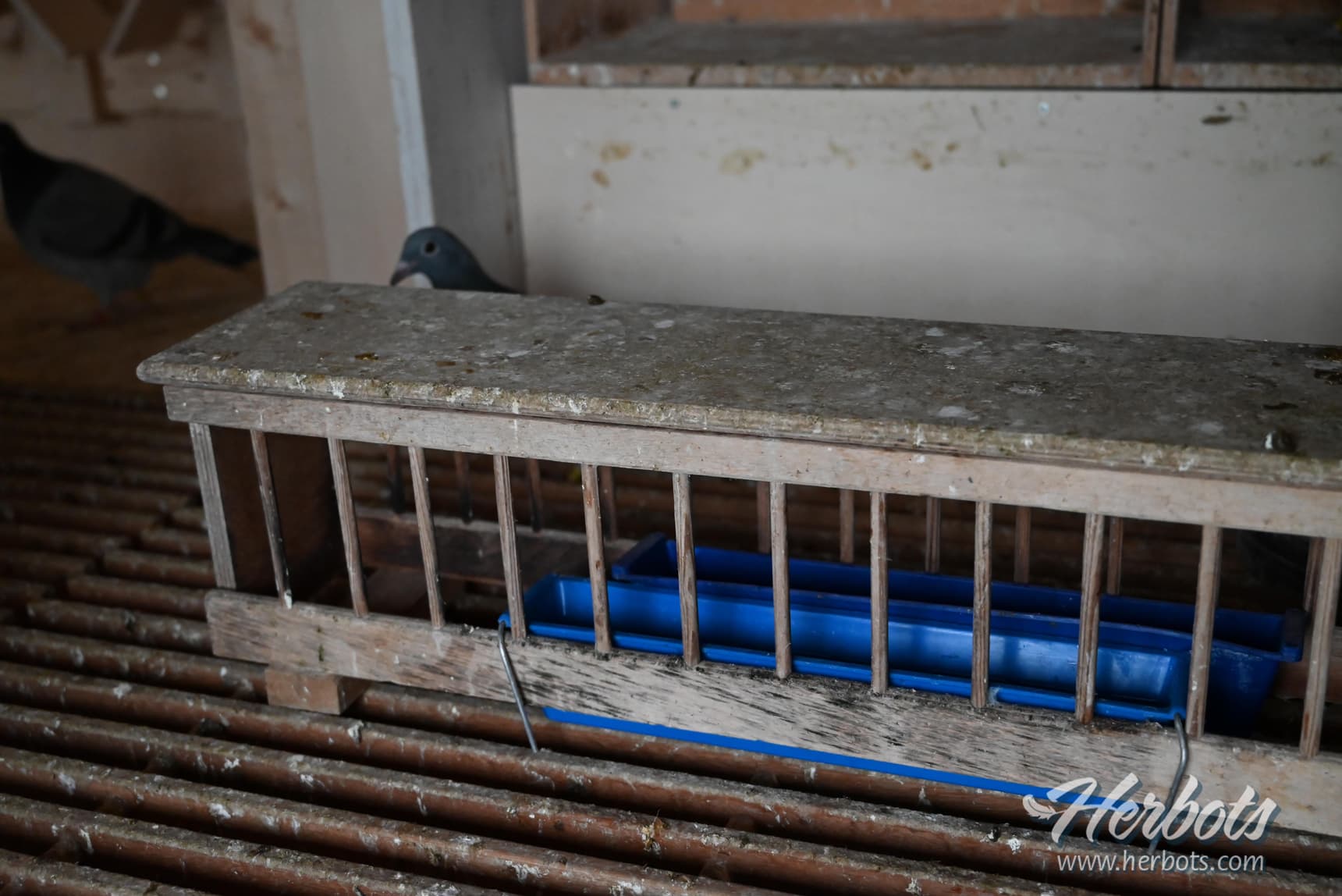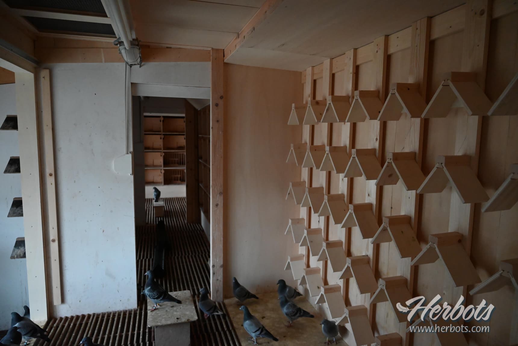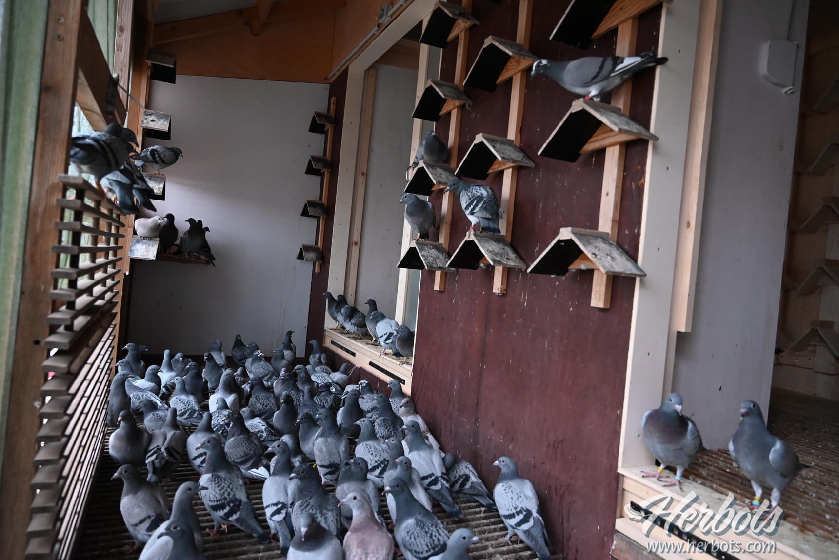 Troisièmement, et c'est un facteur à ne pas sous-estimer, le pigeonnier. Une belle anecdote à ce sujet. En 2021, mes filles Alicia et Alina ont demandé un pigeonnier comme leur père. Pour ses enfants, un parent est prêt à tout et elles ont eu leur propre pigeonnier. Contre un mur, à un endroit où je n'aurais jamais construit un pigeonnier, un mini-pigeonnier avec un toit en tôle ondulée et neuf plateaux a été construit. Mais, et c'est là le plus important, les pigeons ont super bien volé dans ce petit pigeonnier. L'état des pigeons présents était toujours bien meilleur que dans les autres pigeonniers. C'est pourquoi j'ai transformé le "mini-pigeonnier" en un "vrai pigeonnier" et les femelles ont continué à y faire de superbes performances. C'est mon meilleur pigeonnier et je ne veux jamais le perdre !