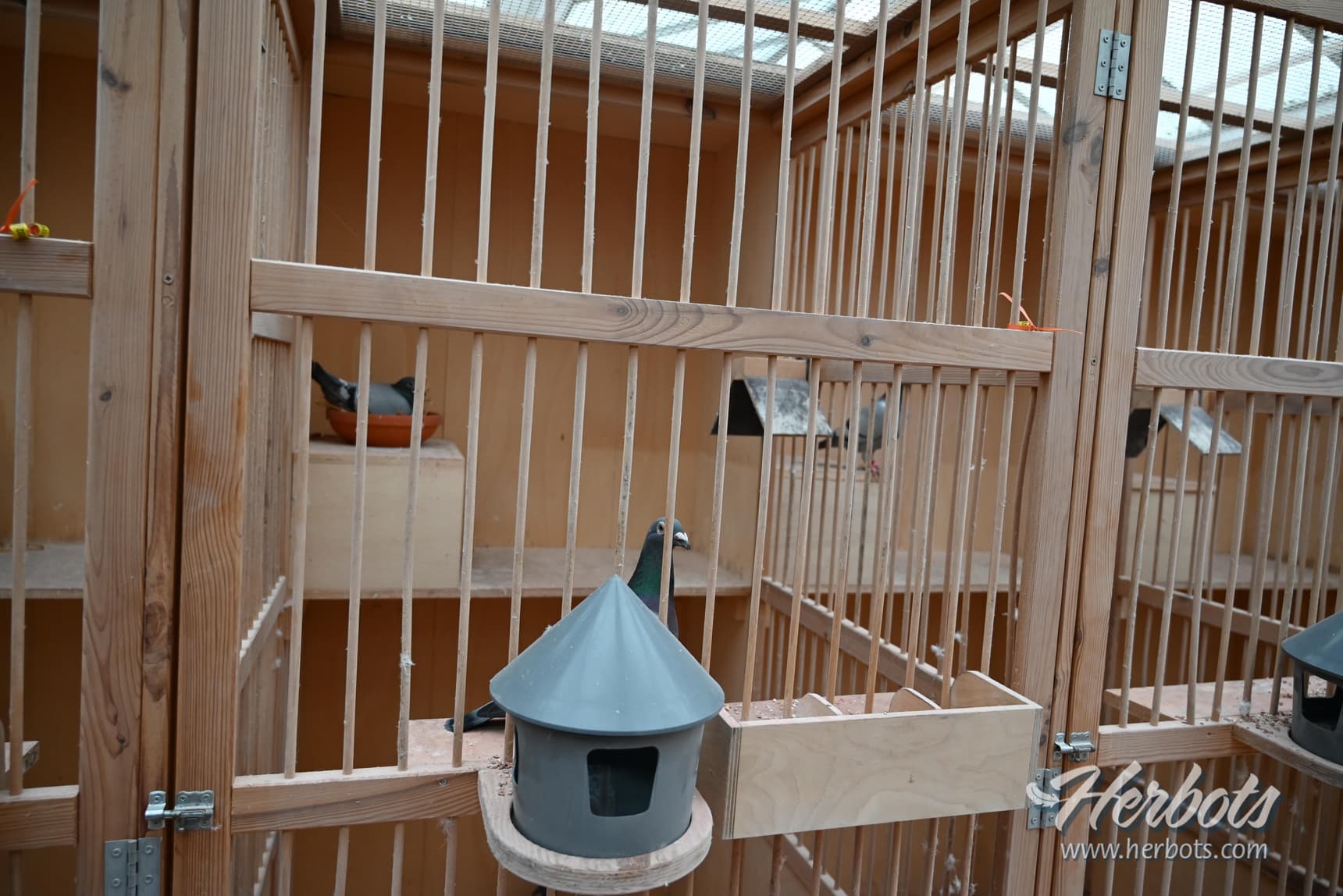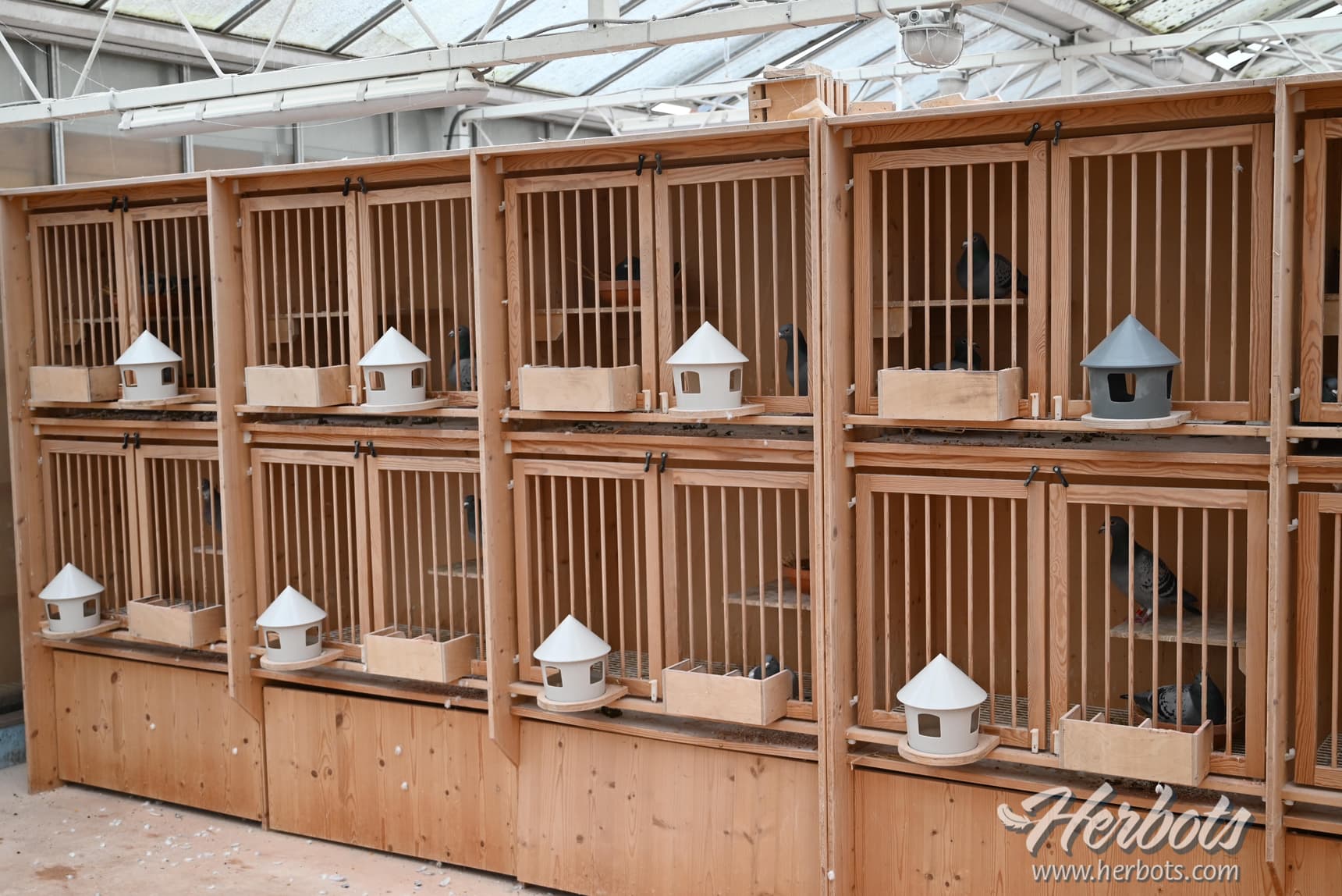 Les femelles ont été accouplées au début du mois de février et on leur a permis d'élever un petit. Lorsque les jeunes ont atteint l'âge de deux semaines, les nids ont été posés sur le sol et les mâles ont disparu du pigeonnier. Comme nous aimons avoir la forme plus tard dans la saison, les femelles sont obscurcies. Cela se fait de début mars à mi-mai de 19h à 7h du matin. Pendant la saison, les femelles s'entraînent deux fois par jour. Avant la saison, nous osons parfois lever le drapeau pour les maintenir en l'air pendant une heure, mais pendant la saison, 20 minutes d'entraînement suffisent amplement. Remarque... la méthode d'entraînement est très importante. Il doit y avoir de la puissance dans les battements d'ailes. Le "compteur de puissance" doit être dans le rouge. Lorsqu'ils sortent, nous sommes heureux s'ils disparaissent immédiatement de la vue et ne réapparaissent au-dessus du pigeonnier qu'après 10/15 minutes. Lorsque vous voyez cela, en tant que colombophile, vous partez le week-end suivant avec un cœur un peu plus détendu. Commencer la saison avec des pigeons en pleine forme est finalement si important. Les vétérinaires Henk de Weerd et Norbert Peeters sont de bons amis. Je rends visite à l'un d'eux tous les 14 jours pour m'assurer que tout va bien. Leurs conseils sont suivis, mais l'armoire à pharmacie reste généralement fermée. Contre le tricho, une "goutte jaune" est administrée chaque semaine et "Stop Snot" du Dr Peeters est administré à la maison et le mercredi. "Stop Snot" a un effet similaire à celui de "Sliepzand" tout en épargnant les muqueuses. Pendant la période hivernale, nos pigeons reçoivent quotidiennement du "Daflor 3 in 1". Nos reproducteurs également tout au long de l'année et nos jeunes du sevrage jusqu'aux premiers vols. Pendant la saison, nous fournissons des produits Beute depuis 2021. Avant le début de la saison, ils reçoivent Clear Balance pendant 8 jours et immédiatement après, 14 jours de LTW. Pendant la saison, l'"Electro Boost" (au retour) suivi du Belgasol ou du Clear Balance et du LTW ne sont jamais loin. Olympic MG Mix est également fourni régulièrement. L'alimentation provient de Versele-Laga. Lors du retour à la maison, nous donnons un mélange de Champion Plus et d'Energy Plus. Le dimanche, nous osons donner Detox (Matador) pour saupoudrer Gerry Plus dans la mangeoire le lundi. Le mardi, nous donnons une alimentation un peu plus lourde avec 50% de Gerry Plus et 50% de Champion Plus, le mercredi 1/3 d'Energy Plus et 2/3 de Champion Plus et le jeudi (jour de l'enlogement) Energy Plus jusqu'à 14 heures. Pendant la semaine, les femelles sont enfermées dans des "boîtes de comptoir" (voir photo). En 2022, nous avons eu beaucoup de problèmes avec les dames qui s'accouplaient entre elles, ce qui est pernicieux pour les femelles. C'est pourquoi j'ai demandé à Luc Daans de fabriquer des "petits boxes de repos " où les femelles sont enfermées pendant la journée. Les femelles sont autorisées à quitter leur lieu de repos 3 fois par jour pour boire. Avant la mise en panier, les mâles ne sont jamais montrés. Les femelles sont autorisées à entrer dans le pigeonnier avec les boîtes au moment de l'enlogement, mais une fois qu'elles ont volé dans leur boîte, elles sont immédiatement mises dans le panier.