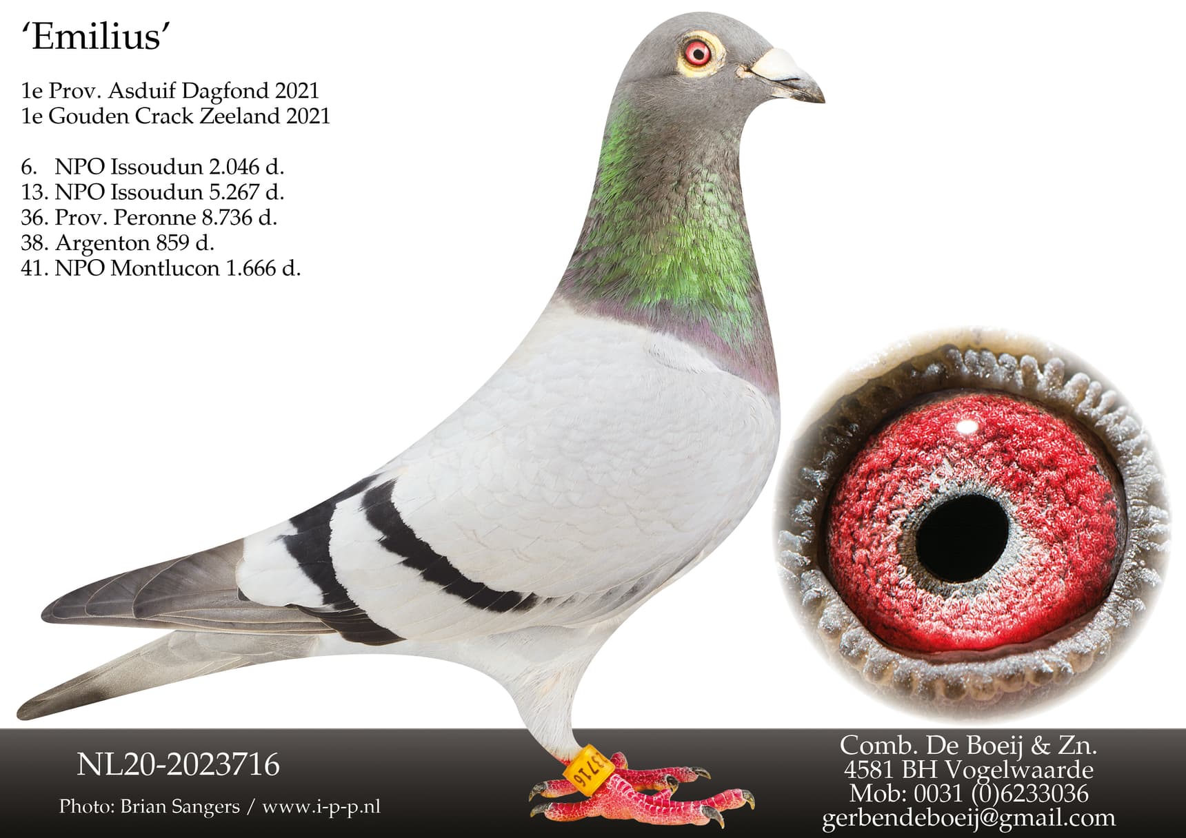 When young pigeon race "Orleans" is on the flight programme, many Dutch pigeon fanciers' hearts beat a little faster. Preparations for this famous young pigeon race are always a little more nervous than for any other race. Father-son combination de Boey from Vogelwaarde also eagerly looked forward to this race. The condition of the young pigeon team was more than good because a week earlier a great performance from Pont St. Maxence was put on paper. For Orleans 49 pigeons were basketed and the youngsters did brilliantly with the 1st and 6th prize in Sector 1A against 6,556 pigeons and also the highest speed of all Orleans pigeons.