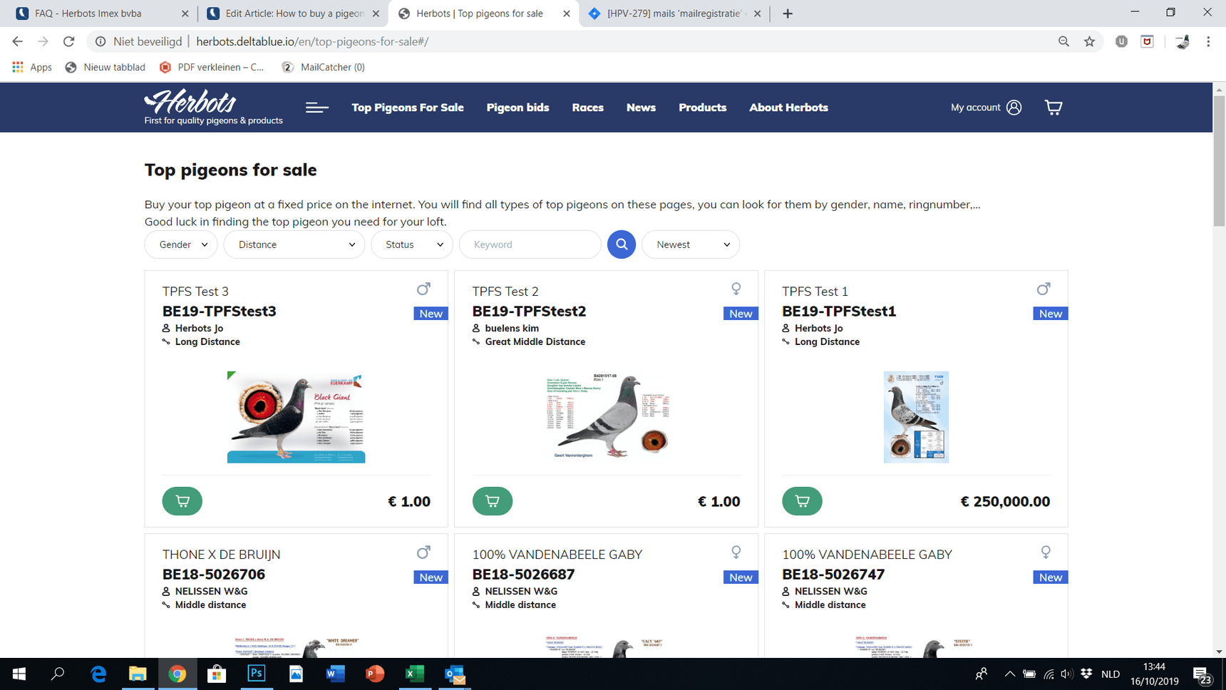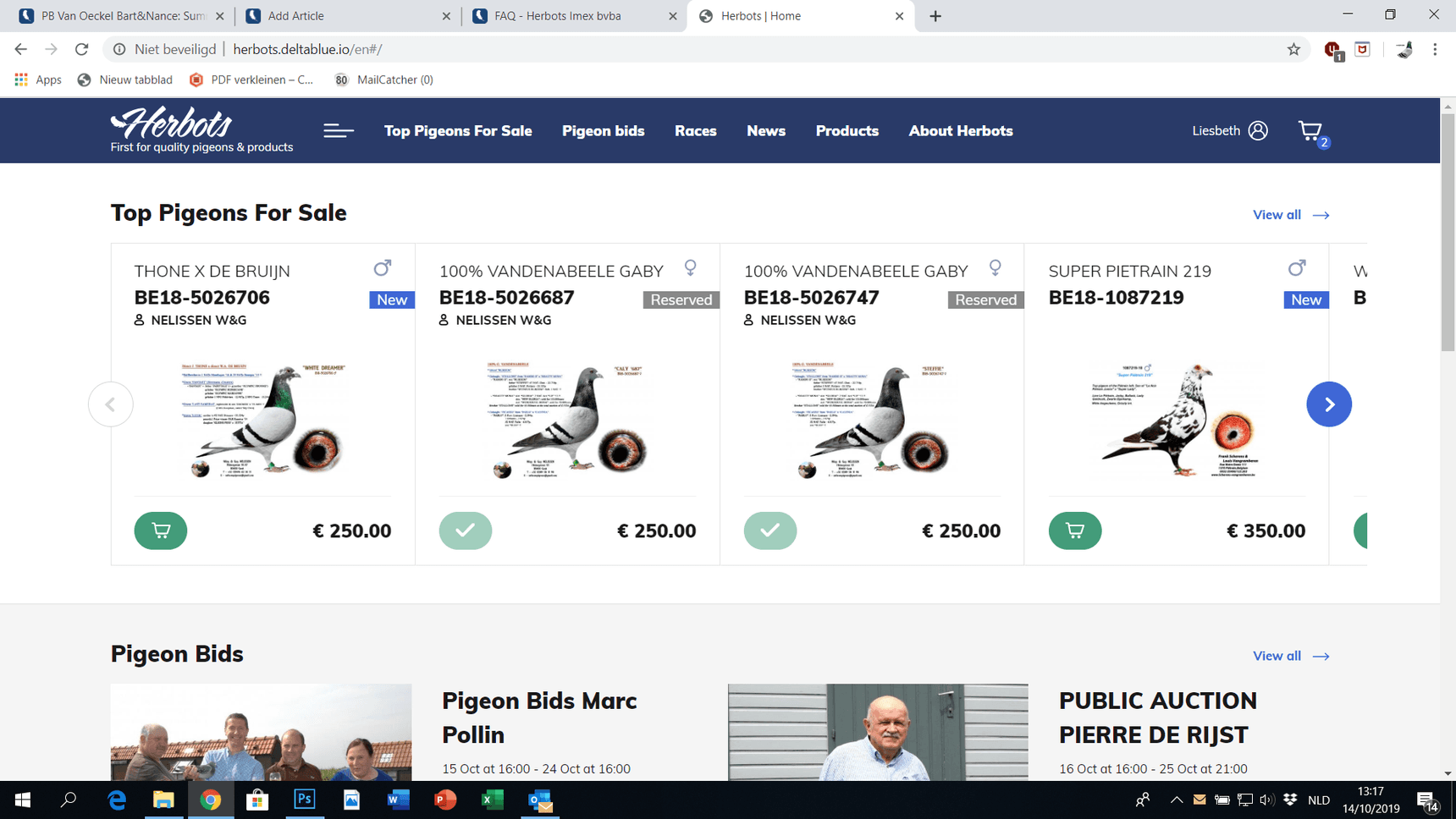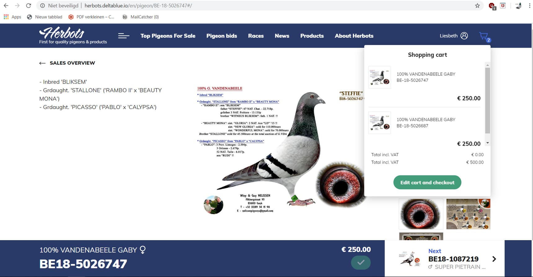 Etape 3. Vous pouvez immédiatement cliquer sur un des pigeons sur la page d'accueil ou vous pouvez aller via le menu de "top pigeons à vendre" afin de recevoir l'aperçu ci-dessous.