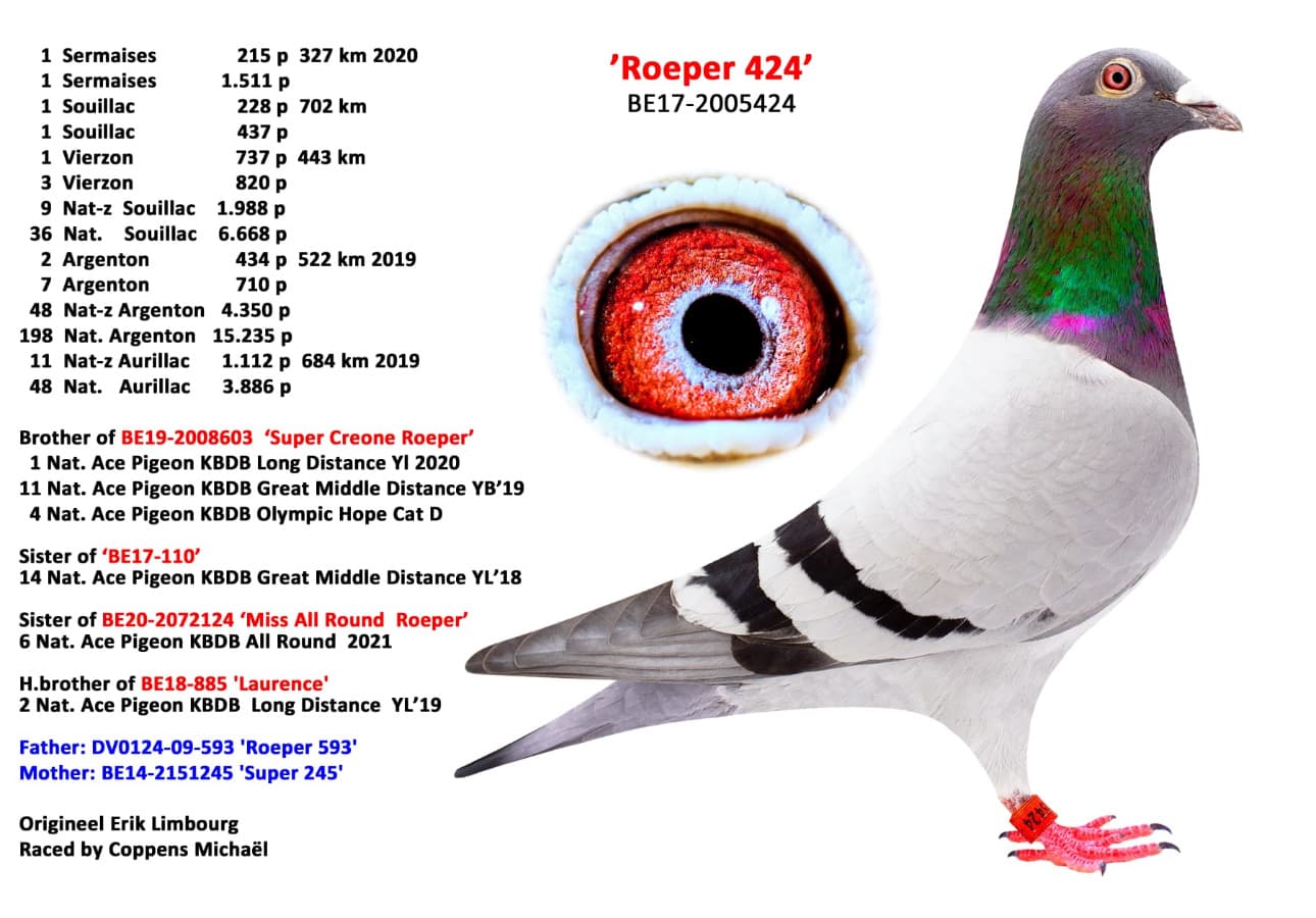 Fille du fils du « 621/21 » Creone Roeper 1 As Pigeon Nat Fond Yearlings RFCB 2020 x