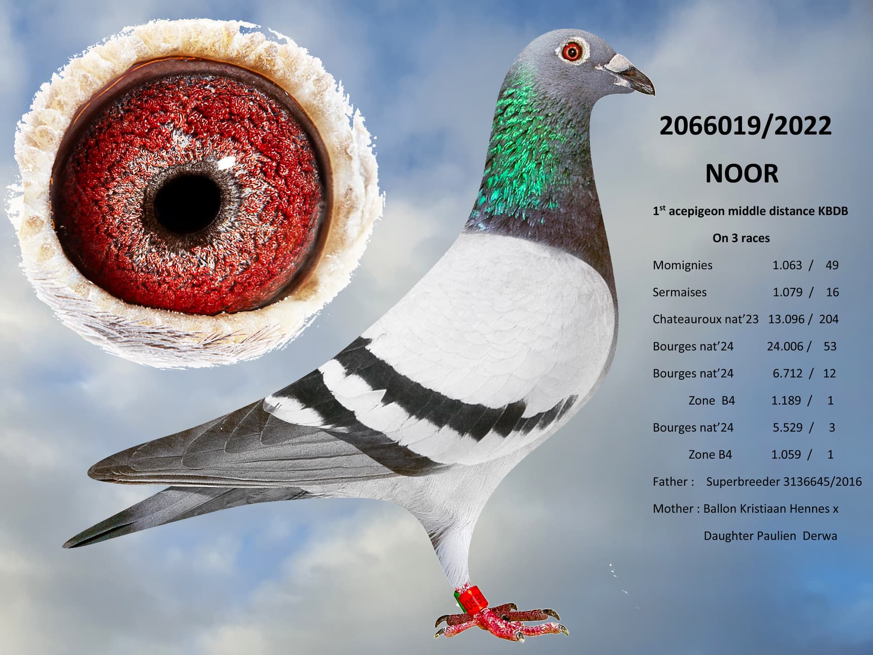 Un fils du pigeon as national « Noor » accouplé à un fils de « De Zot », deux fois dans le top 5 national.