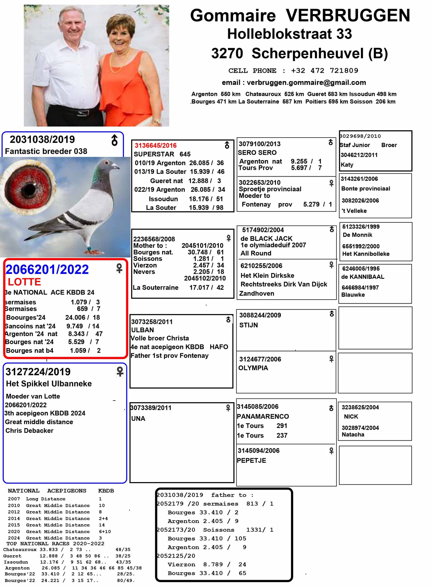 gommaire verbruggen (scherpenheuvel) et sa belle lignée autour du « superstar 645 »