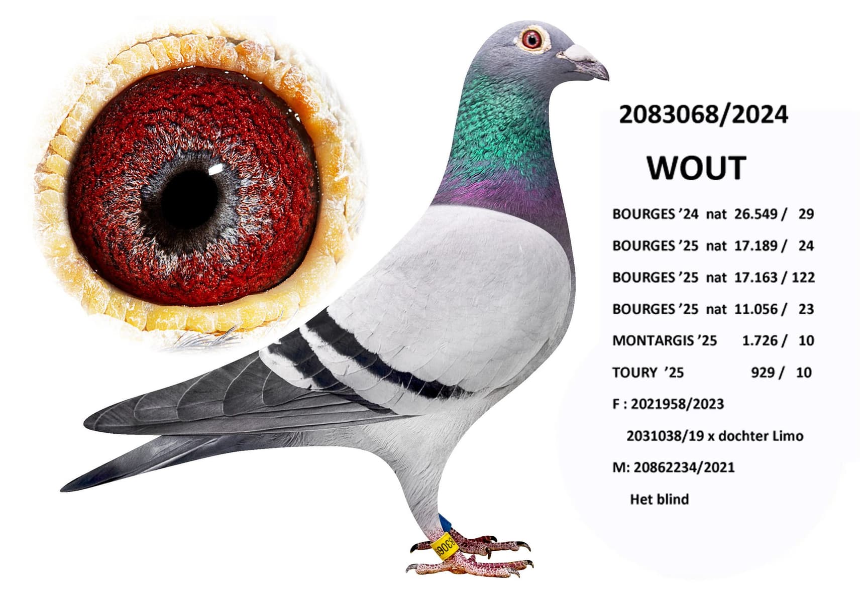 Elle est aussi mère de « 003/22 » 1 Nat (z) Bourges 1.558p (le plus rapide de 3.973 pigeons)
