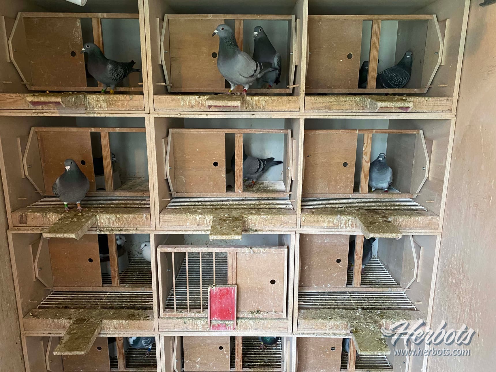 Hadrien a pour habitude d’élever environ 180 jeunes afin de constituer une solide équipe de jeu mais également pour palier au pertes des pigeonneaux dont beaucoup d’amateurs sont victime ces dernières années. L’année 2024 fût une année compliquée à ce sujet chez Hadrien avec d’importantes pertes dans le premier tour. C’est également pour cette raison qu’il a décidé de ne plus jouer les jeunes dans les nationaux ! Lors des premiers entraînements la prudence est de mise et de nombreuses étapes sont effectuées. Il commence avec des petites distances et entraîne plusieurs fois au même endroit pour mettre les jeunes en confiance et il finit à environ 45kms, qui est à la frontière française. Une fois la saison commencée, les jeunes sont entraînés une fois par semaine. Étant sur le passage de bon nombre d’amateurs qui viennent entraîner à proximité, la prudence est également de mise pour les premiers vols autour de la maison.Les deux premiers tours sont occultés , ce qui n’est pas le cas du dernier tour. Les deux premières tournées sont joué à la porte coulissante alors que les derniers sont joués au naturel.