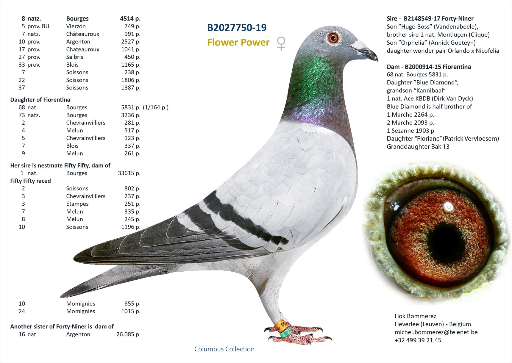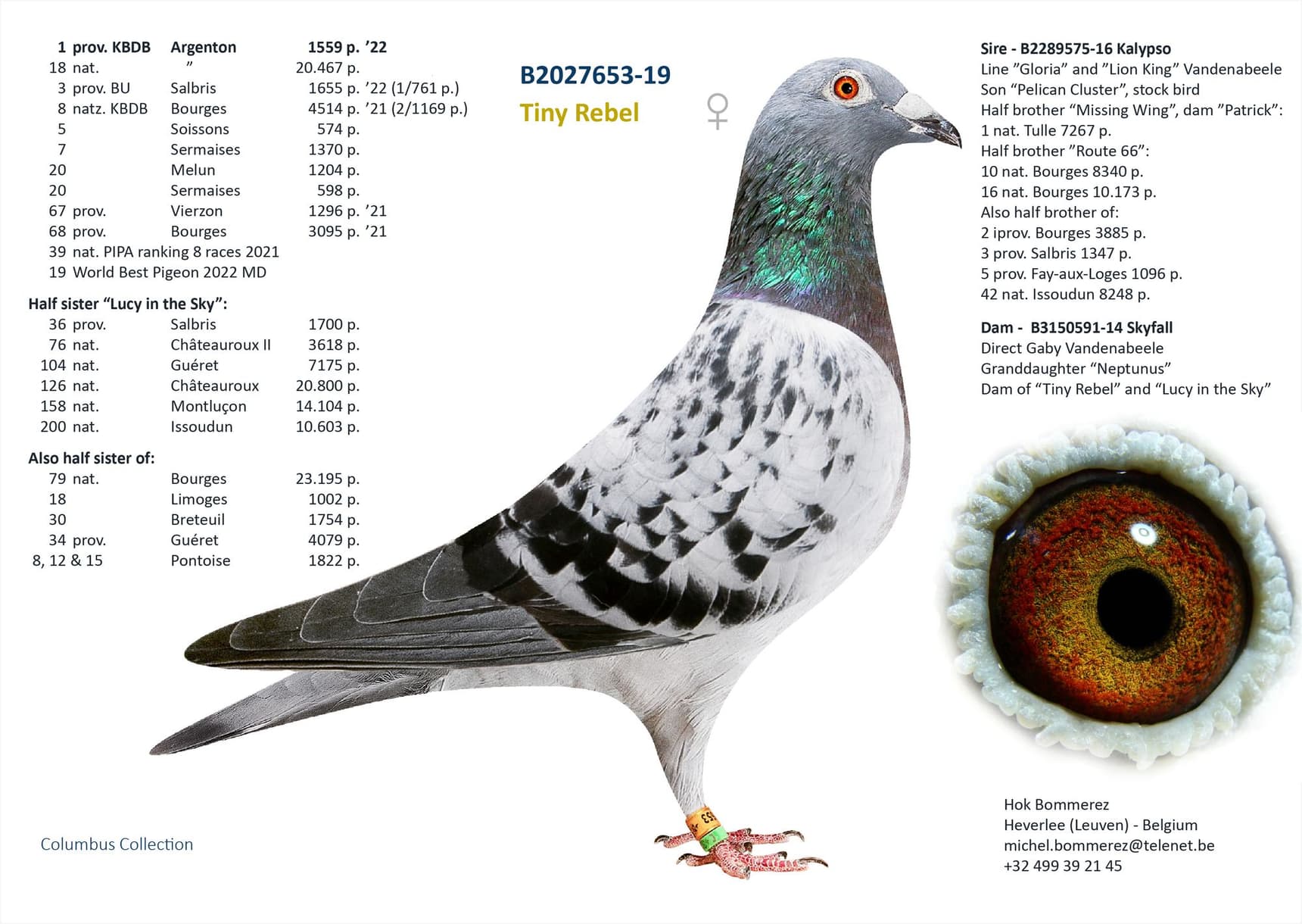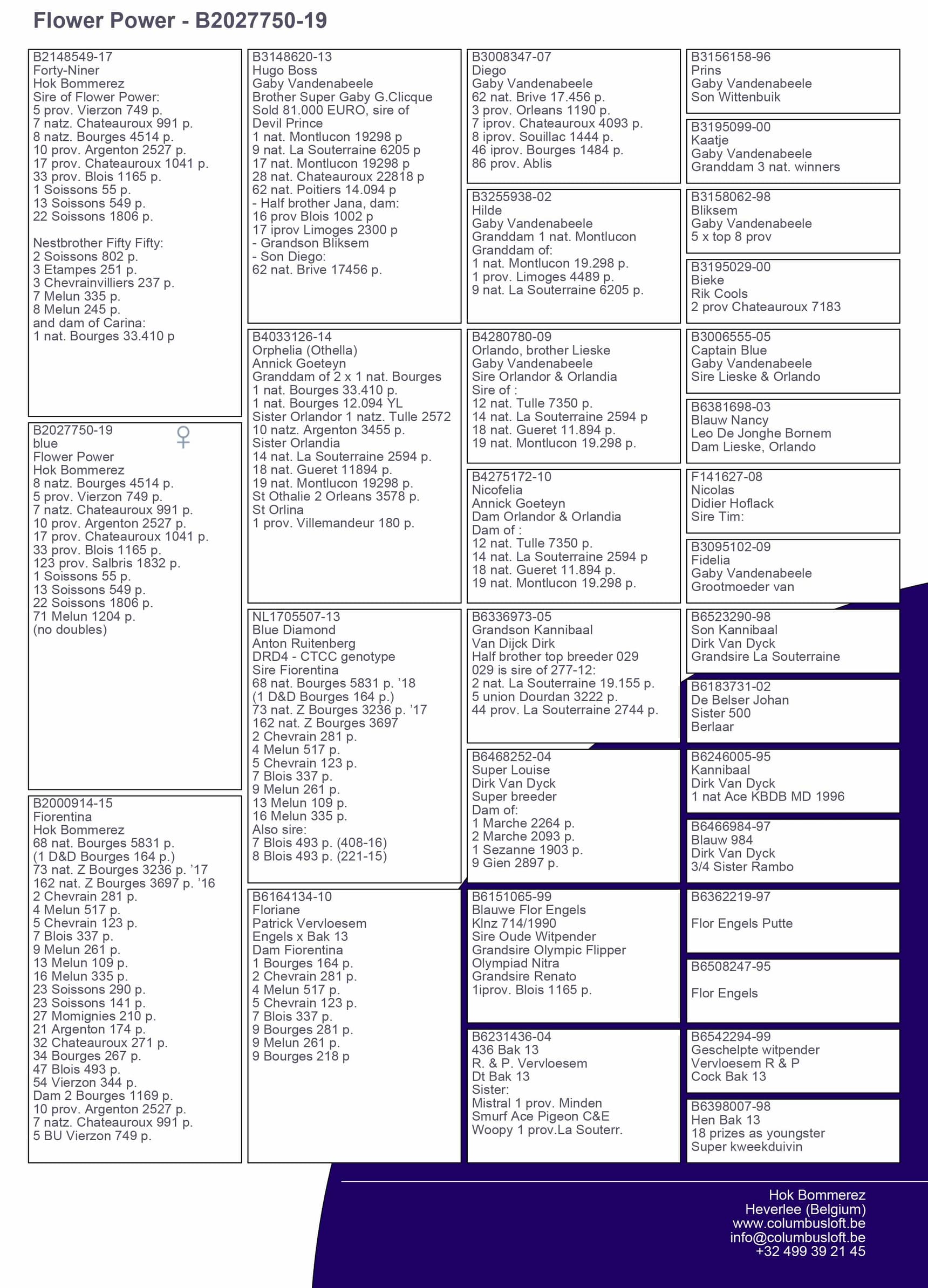 ½ sister “063” 14 Nat Ace long distance KBDB 2020 – 1 Trelou 1.037p – 8 Nat (z) Brive 747p – 11 Prov Limoges 2.365p – 12 Nat (z) Souillac 1.305p