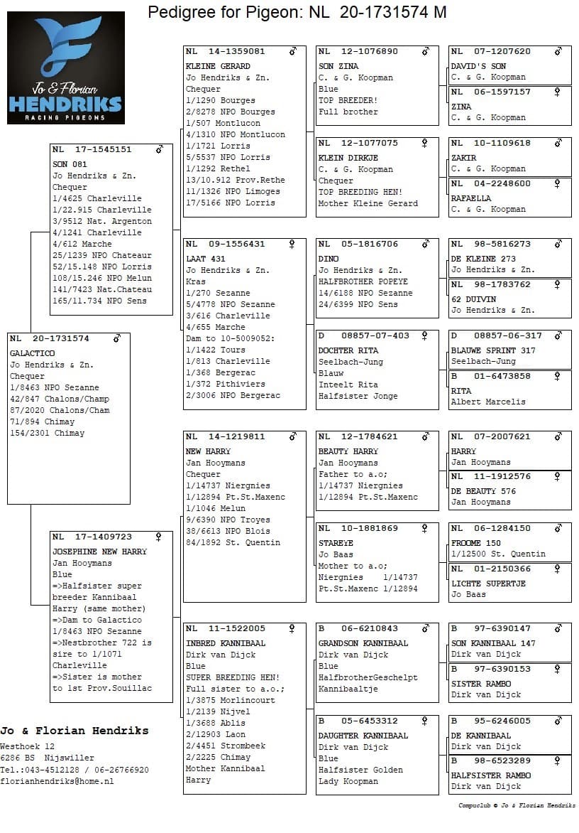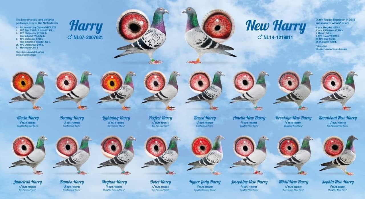 The breeding loft of our champions is a wealth on top quality as at this moment there are no less than 10 direct children form the world famous “Harry” (NL07-2007621 - 7 sons and 3 daughters) and about 10 original Gerard Koopman pigeons (especially out of the strain “Zina”). Next to this our champions are also very successful with children out “King Kong” (NL09-1499901 – 5 x 1st prize), a full sister to “Friendship” (Jan & Rik Hermans) and the explosive breeding line from “Kleine Gerard”