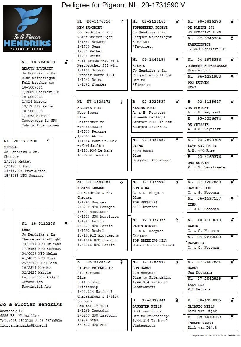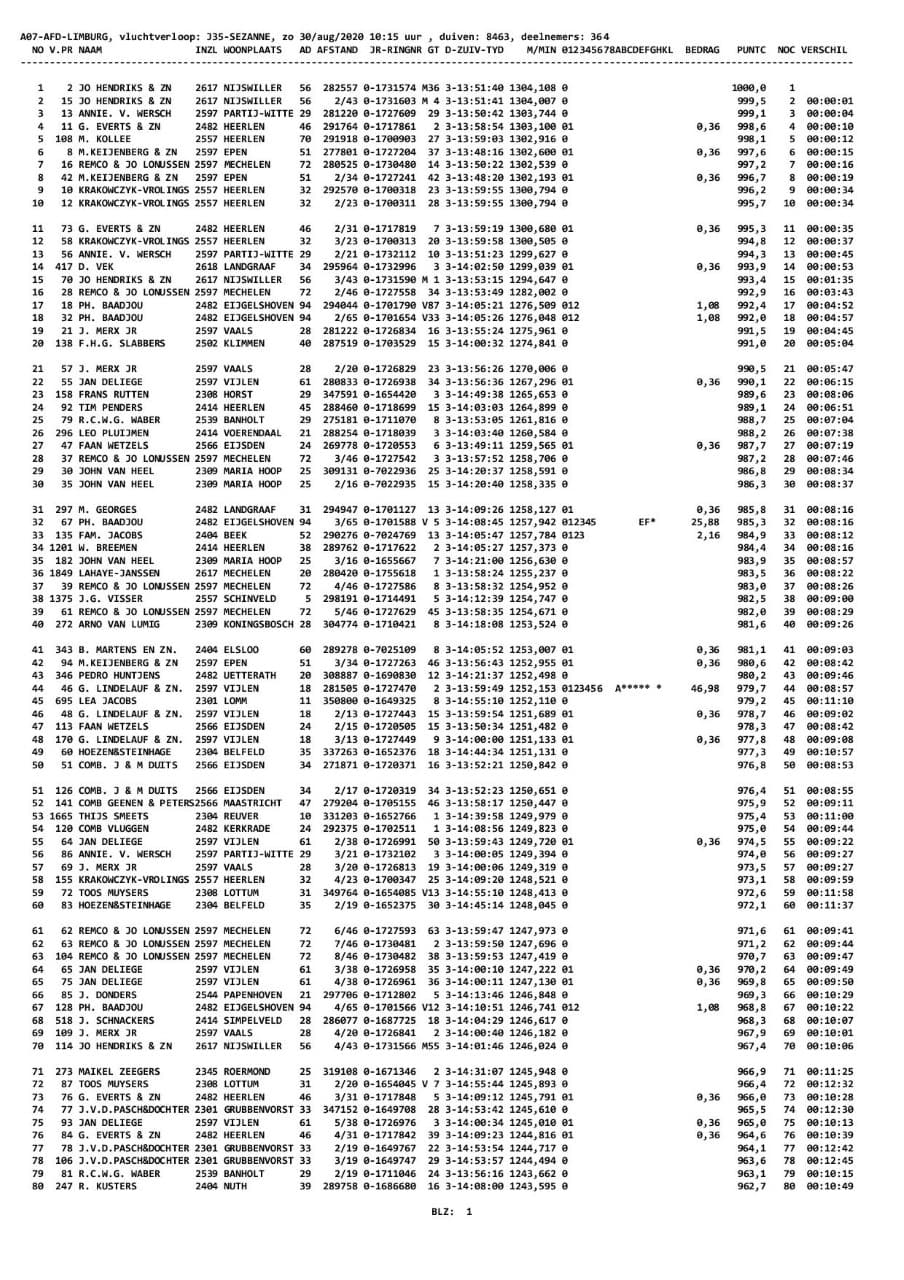 We already knew for a long time that Jo & Florian Hendriks are top class. Last year they conjured up world results from Vierzon, Chateauroux and Argenton and last weekend it was bingo again. On the program was the NPO race from Sezanne. Just counted 282km from Nijswiller and against 8,463 pigeons our sympathetic champions win: 1-2-15-70-114-119-125-132 and so on.